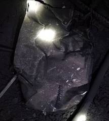 2#联络巷口(501盘区东翼辅运巷侧)停放有一辆烧毁的牌号为蒙C-JA665的非防爆长城皮卡车(图11),车厢后挡板(图12)、引擎盖(图13)被冲离距车体6米远,散落在巷口正对的501盘区东翼辅运巷右帮底部。