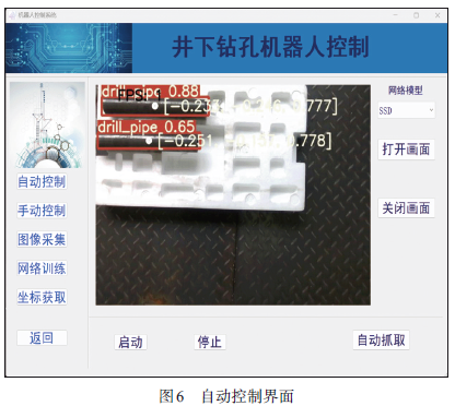 用户可开启图像显示功能,并人为干预机械臂的运动状态,手动设置钻机钻进参数等;手动控制优先级高于自动控制,手动控制信号发至智能钻机客户端,在软件调试和现场出现异常时发挥重要作用。