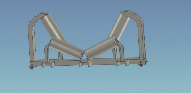 (7)将2#运矸带式输送机大倾角段H架和托辊约60 m处,更换为大包角的托辊架(图6),充填时调整好充填量,最大程度上避免该区段在运输时矸石滚落。