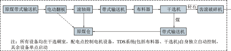 TDS系统自身控制不做改动,控制信号在地面统一处理。干选系统设备开关统一型号,配电点需要更换KBZ-400馈电2台,QJZ315启动器1台,启动器2台,QJZ80启动器4台。