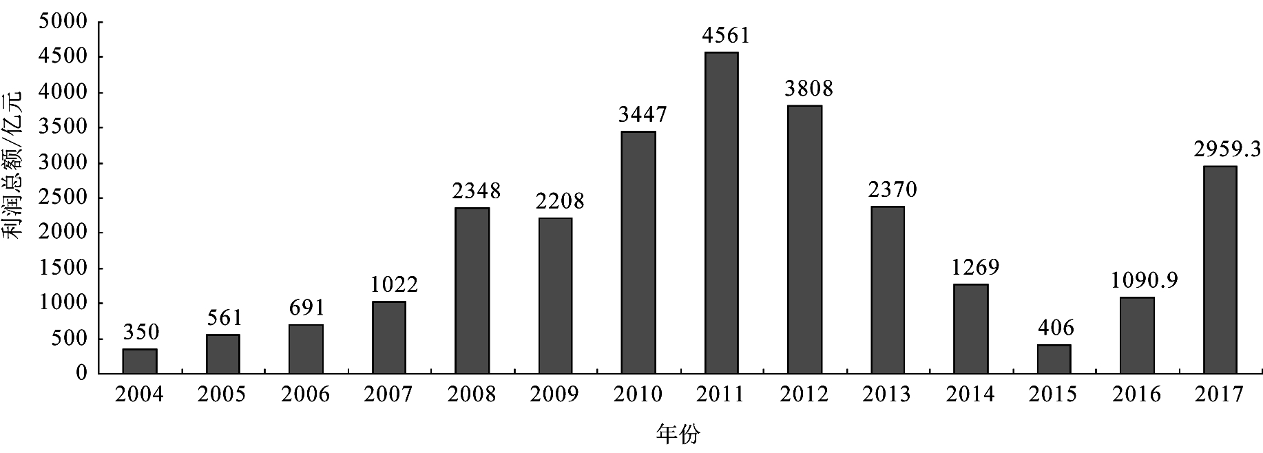图4 2004-2017年全国规模以上煤炭企业利润总额变化情况