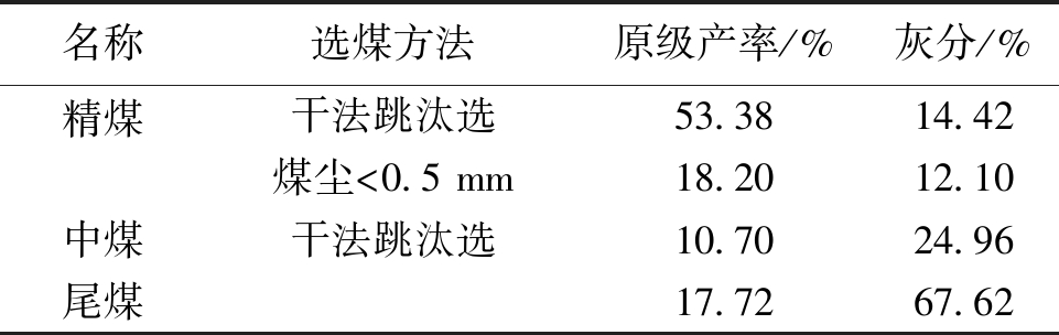 名称选煤方法原级产率/%灰分/%精煤干法跳汰选53.3814.42煤尘<0.5 mm18.2012.10中煤干法跳汰选10.7024.96尾煤17.7267.62