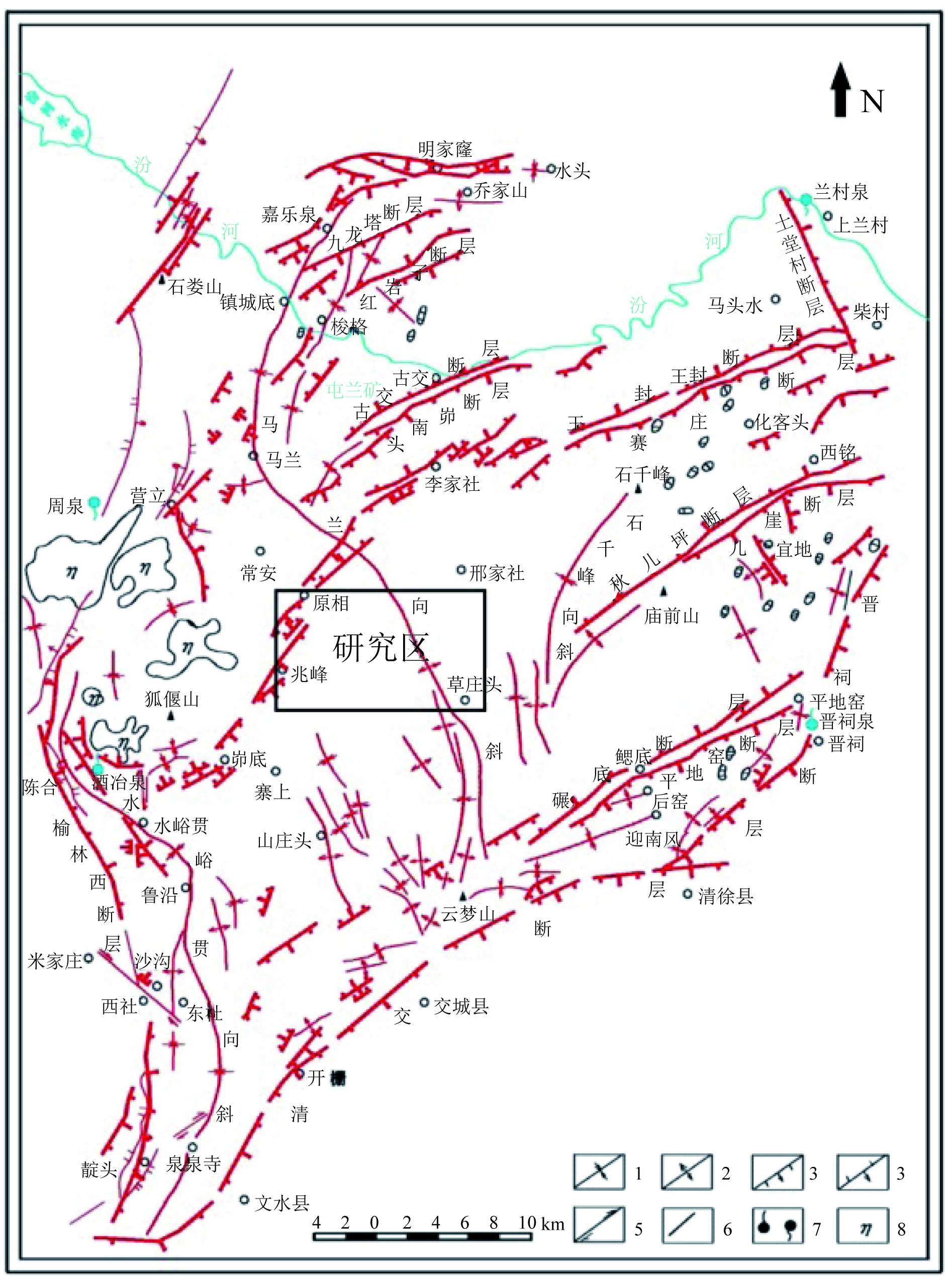 图1 太原西山构造简图