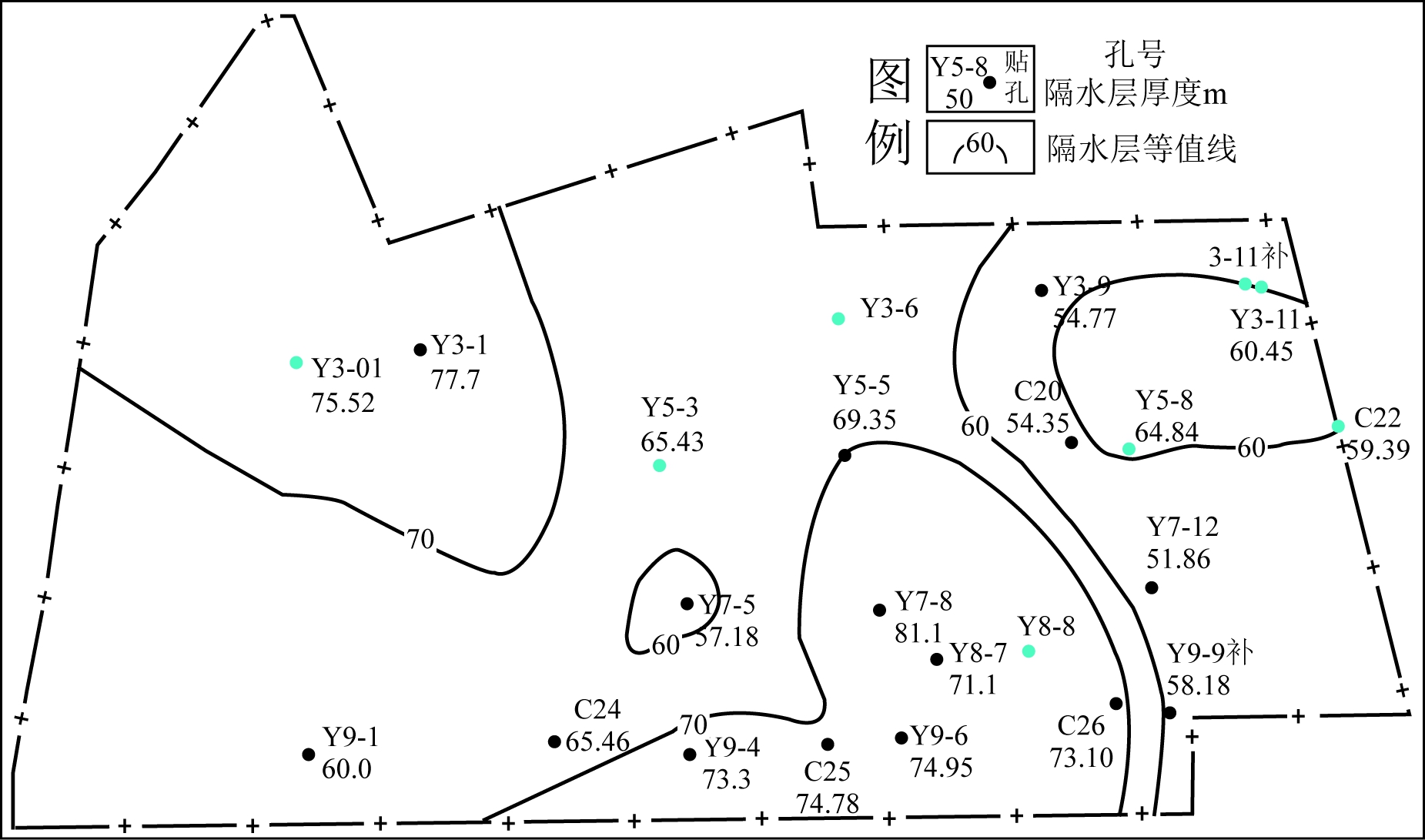 图2 9#煤层底板至奥灰界面厚度等值线图