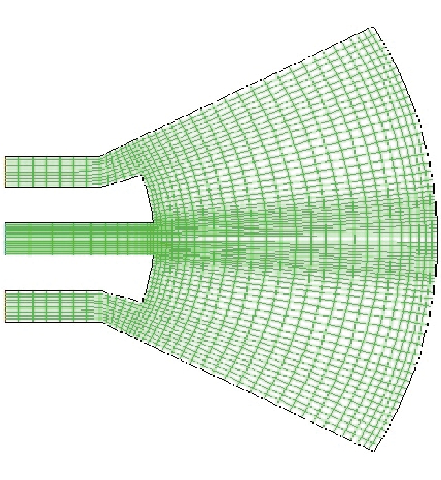 锥形燃烧器的几何模型结构如图1所示,在中心区域包含一个小的喷嘴,在模拟锥形燃烧器燃烧的过程中,计算得出这个模型的网格数和数值模拟结果之间有着直接关系,一般来说,随着网格密度的提高,计算精确率就会越来越高,但是当网格数量过于密集时,则会影响CPU计算时间及所需的计算内存;同时,计算的精度与网格密度不一定会呈现出线性关系,在某些场合中,如果当计算出的网格密度达到了特定程度时,继续增加网格密度,计算误差反而可能会增大[14]。因此,本文通过采用Gambit软件的Submap方式对所建立的物理模型进行了四面体的网格划分,其中网格个数为793 518个。网格划分后的物理模型如图2所示。
