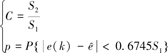 (6)模型诊断。为了分析模型的可靠性,对模型进行诊断,目前较通用的诊断方法是对模型进行后验差检验,即计算观察数据离差S1及残差的离差S2:
