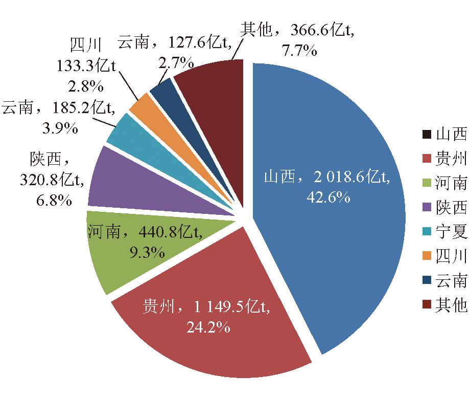 我国无烟煤资源并不丰富,预测储量为4 742.43亿t,占全国煤炭总资源量的10%。主要分布在山西、贵州、河南、陕西和宁夏等省(区),如图7所示。