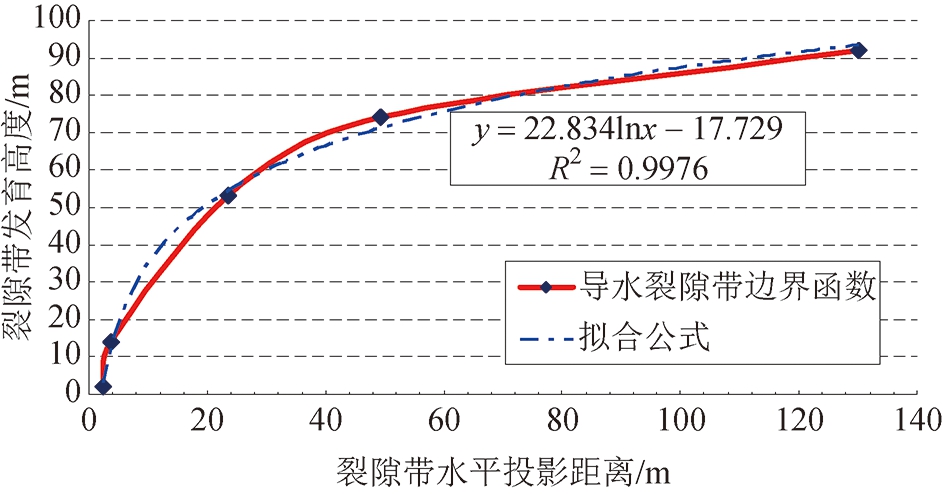 图10 首采工作面覆岩导水裂缝带发育形态及拟合曲线