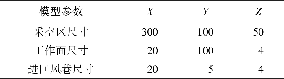 模型参数XYZ采空区尺寸30010050工作面尺寸201004进回风巷尺寸2054