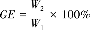 (2)评价指标。接枝效率为接枝共聚物占接枝共聚物与未反应单体、均聚物总和的比值,即目标产物占总产物的百分比,是反映接枝效果的重要指标。接枝效率越高,未反应单体及均聚物越少,接枝效果越好。计算接枝效率(GE)[11-12]见式(1):