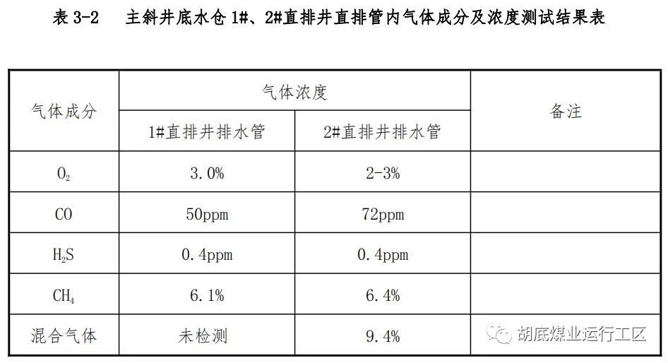 11)为核查是否由于主斜井底水仓 2 台直排井潜水泵泵体拆除后,排水管管口敞开,排水沟内气体通过管道涌入主斜井底,导致水仓上方 150m 巷道范围内 O2浓度降低,N2、CH4、CO等气体浓度升高,2017 年 8 月 31 日,技术组、专家组安排晋煤集团救护消防中心和通风处还原并模拟事故现场,详细情况见《晋煤集团王台铺矿“8.26”事故现场还原情况报告》。 (二)风井工业广场和主斜井底直排井地面排水口现场勘察 2017 年 8 月 30 日 14:00 至 17:00,技术组、专家组对风井工业广场和主斜井底直排井地面排水口现场进行了详细勘察。 1、地面现场勘察路线 风井工业广场→ 风机房调度台→主斜井底直排井地面排水口附近。 2、勘察情况 1)矿井在地面风井工业广场新建了 3 个地面直排井泵站,计划将 3 趟排水管道经 2#风井(1#风井和 2#风井属于并联,在用风井编号为 1#风井,揭开防爆盖风井编号为 2#风井)引入 620水平水仓。因此,矿井于 8 月 21 日对地面风井工业广场 2#风井防爆盖进行了拆除(在风硐中设置调风设施),矿井总排风量为7500m³/min,有效风量为 3748m³/min。 2)通过查询记录,8 月 21 日,1#风井风量由 853m³/min 升至 7750m³/min 左右。8 月 30 日,现场查询记录,1#风井风量7760m³/min,全压 350pa,静压 550pa。 3)在矿井工作人员的陪同下,技术组成员对主斜井底直排井地面排水口现场进行勘查。该处地面全部由黄土覆盖。据工作人员回忆,此处以前是矸石场,矸石场内堆放矸石的高度约4~5m,上面用黄土覆盖;主斜井底直排井的地面排水管网现在是深埋在地面以下的隐蔽排水系统,直排井排水管进入地面后,分别与 1 号沉淀池、排水沟、2 号沉淀池相连,上面用水泥盖板覆盖,最后进入排水管。 (三)事故技术原因分析 技术鉴定组经过现场勘查、询问相关人员和查阅有关法律法规及矿方提供的作业规程、安全技术措施等资料,并结合尸检报告、《晋城无烟煤矿业集团有限责任公司王台铺矿“8.26”较大窒息事故专家分析报告》,原因分析如下: 1.主斜井底应急水仓回撤水泵后,未对直排井水管口进行封堵,在大气压力和通风负压的共同作用下,地面排水沟里积存的氧气浓度极低的有毒有害气体沿直排井水管涌入主斜井底。2017 年 8 月 26 日早班,事故地点除回撤水泵作业外,没有安排其他作业。据笔录,2017 年 8 月 26 日早班,综掘一队副队长李燕中等 11 人回收主斜井底应急水仓处的 3 台水泵。8 时 30分到达作业地点,开始拆卸与 2 个直排井相连的水泵,约 11 时完成水泵回收任务后升井。作业期间携带的便携式甲烷报警仪显示的最高瓦斯浓度为 0.03%,未发现瓦斯异常涌出。 2017 年 8 月 29 日 16 时,王台铺矿通风副总靳海华向事故调查技术组、专家组汇报:怀疑是地面深埋水沟积存的有毒有害气体经直排井水管逆流进入主斜井底。技术组、专家组当即安排靳海华和晋煤集团救护消防中心救护队员下井对 2 个直排井水管内部进行气体流量测试和气样采集(每个直排井采集 2个气样,取样深度为管内 1m)。经山西省煤炭工业厅综合测试中心测试,化验结果如下:1 号直排井水管:有气体向巷道涌出,流量1.42m³/min,O2浓度2.46-2.95%,N2浓度91.87-92.38%、CO 浓度 51.68-53.33ppm、CH4浓度 0.35-0.36%、CO2浓度 4.66-5.39%、C2H4浓度 0-0.11ppm、C2H6浓度34.84-39.03ppm、C2H2浓度 0ppm、 C3H8浓度 0.80-1.00ppm;2 号直排井水管:有气体向巷道涌出,流量 1.49m3/min,O2浓度 3.06-3.18%,N2 浓度 91.46-91.55%、CO 浓度 41.74-42.40ppm、CH4 浓度0.30%、CO2浓度 4.94-5.06%、C2H4浓度 0ppm、C2H6浓度 32.74-33.08ppm、C2H2浓度 0ppm、C3H8浓度 0.79-0.86ppm。 2017 年 8 月 31 日,对事故现场进行还原,设计共还原两个场景。场景一:用堵头对直排井水管口进行封堵,停止局部通风机运转,恢复事故前的通风系统。用甲烷、二氧化碳、氧气、一氧化碳、硫化氢便携式仪器对巷道内的气体进行检测。根据实测数据,在封堵两个直排井水管口 5 小时后,巷道内氧气浓度持续保持在 20.9%,其它有毒有害气体几乎为零。从氧气及有毒有害气体浓度变化的趋势来看,交叉口以下巷道能够维持作业人员需求;场景二:打开直排井水管口,继续停止局部通风机运转,还原事故发生过程,对巷道内的气体进行取样分析,同时用甲烷、二氧化碳、氧气、一氧化碳、硫化氢便携式仪器检测采样点的有害气体。根据实测数据,有毒有害气体涌入主斜井底 2 小时后,魏月富窒息地点处 O2浓度为 8.55%、N2浓度为86.2%、CO2浓度为 3.85%、CH4浓度为 0.24%;4 小时后魏月富窒息地点处 O2浓度为5.22%、N2浓度为 88.35%、CO2浓度为 4.68%、CH4浓度为0.31%。 根据山西省煤炭工业厅综合测试中心化验结果和事故现场还原结论,证明直排井水管向主斜井底涌入的气体是氧气浓度极低的有毒有害气体。 据调查,直排井的地面排水管网是深埋在地面以下的隐蔽排水系统,直排井排水管进入地面后,分别与 1 号沉淀池、排水沟、2 号沉淀池相连,上面有水泥盖板,在之上有 4-5m 厚的矸石、黄土覆盖层。雨季大量降水渗入矸石,矸石氧化消耗矸石堆中的氧气,使 N2浓度升高并产生大量的 CO、CH4、CO2等有毒有害气体,这些气体长时间积存在沉淀池和排水沟中。 主斜井应急水泵未回撤之前,水泵与直排井水管之间处于密封状态,地面沉淀池和排水沟中的高浓度 N2以及 CO、CH4、CO2等有毒有害气体不能进入主斜井底。主斜井应急水泵回撤后,敞开的直排井水管口与主斜井连通,在大气压力