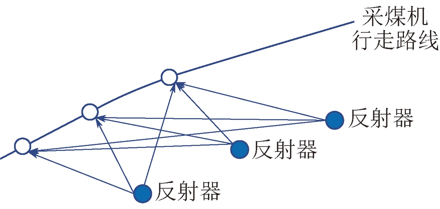 1970年,马里奥·卡杜罗(CARDULLO M)申请了“应答器装置和系统”专利,这是第1个现代射频识别(RFID)的原型机[64];在21世纪初,RFID技术开始用于煤矿井下移动目标的位置识别,包括下井人员考勤及定位、井下机车定位跟踪及智能调度、备件仓储配送管理;2016年,田成金[65]提出了基于RFID的采煤机定位方法,RFID读写器安装在采煤机上,标签安装在液压支架上,当采煤机在工作面上移动时,机身上的读写器可以同时读到1个或多个液压支架的标签,利用软件算法解析确定出采煤机位置。采用射频场强检测定位方法,依据采煤机通过液压支架的射频场强变化估算二者之间的相对位置,相对定位误差可控制在20 mm以内[66]。