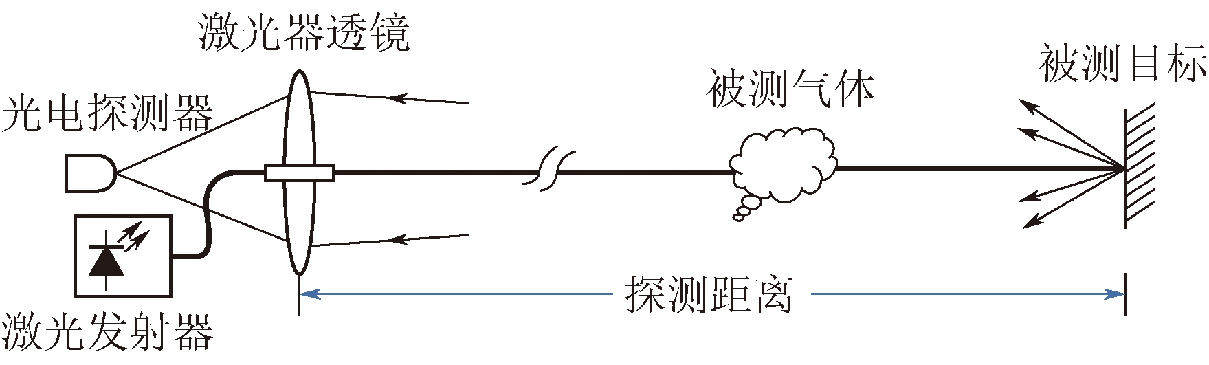 1971年,美国科学家辛克莱(HINKLEY E D)[53]在Science期刊上首次发表了利用可调谐二极管激光吸收光谱(Tunable Diode Laser Absorption Spectroscopy,TDLAS)对大气污染物进行高精度探测的试验结果,为烟囱排放气体、化工厂危害气体的远程监测提供了新方法;1978年,里德(REID)等[54]介绍了采用可调谐二极管激光吸收光谱技术实现了空气中SO2浓度的检测下限达到0.1~0.3 mg/L;1998年,美国监测技术公司研制成功世界上第1台 TDLAS 气体探测器,选用1.55 μm的 InGaAsP 激光器,用于检测氨气浓度。之后,美国汉斯公司(Heath)研发出手持式RMLD-IS激光甲烷遥距检测仪,最大探测距离为100 m,测距30 m的甲烷检测灵敏度为10 mg/(L·m)。