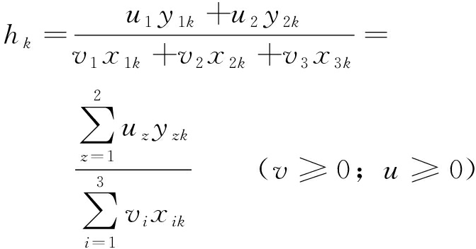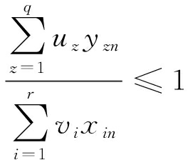 (1) 附加约束条件,所有DMU采用上述权重得出的效率值θn限定在[0,1]的区间内,即