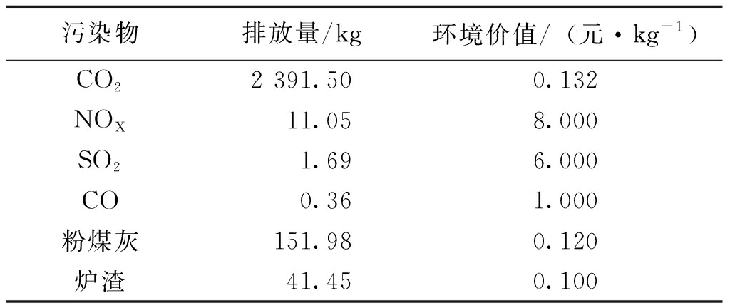 项目指标名称指标含义投入指标环境成本治理污染投入标煤消耗量能源投入量火电装机容量设备投入量产出指标GDP经济总值增长火力发电量火电厂生产电量 1.2 数据来源由于数据统计时间上的滞后性,笔者选取2020年的省际数据进行效率评价。其中火力发电煤耗量、装机容量来源于《我国电力统计年鉴》和Wind数据库,社会火力发电量和GDP数据来自国家统计局。火电厂燃煤发电过程中排放大量烟尘、二氧化硫、氮氧化物、二氧化碳等污染气体和粉煤灰、炉渣等固定污染物[11],其排放造成的环境成本无法直接获取数据,通常情况下选取防护费用作为间接评估标准。笔者以石灰石脱硫工艺产生的费用估算SO2的环境成本[12]。世界观察研究所指出,发展中国家的减碳成本为5~10美元/t,叠加我国严格的“双碳”政策带来的碳排放成本上升的效益后,以0.132元/kg核算CO2排放的环境成本。其他污染物环境成本参照总量排污收费标准界定。借鉴白连勇等[13]通过《燃煤电厂大气污染物排放标准》对火电行业减排污染物的环境成本标准估算结果折算成标准煤的污染物排放量,由此计算出相关数据见表2,各项指标的具体数据见表3。 表2 火电厂燃烧1 t标准煤排放出的主要污染物排放量