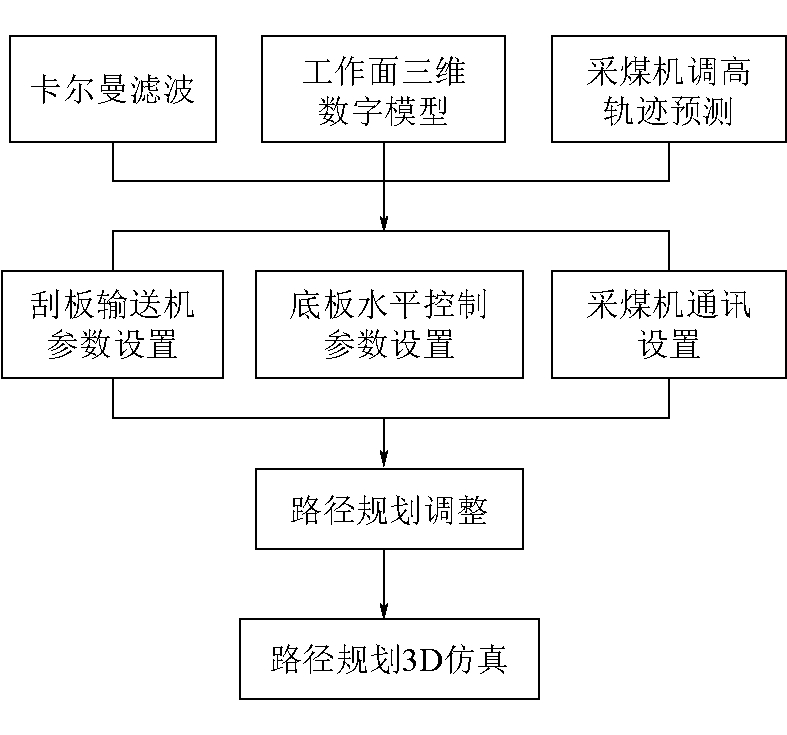 ★ 科技引领 ★ 蒙陕地区中厚煤层智能化综采工作面关键技术应用研究1 研究背景煤矿智能化建设已经成为国家能源安全稳定的重要保障,是煤炭工业持续高质量发展的核心技术支撑[1-4]。智能化开采是煤矿开采技术创新的重要研究领域,大力推进“机械化换人、自动化减人”,已成为煤炭企业实现安全、高效和高质量发展的必由之路。近年来,随着矿井开采强度和深度的加大,地质条件越来越复杂,冲击地压、煤与瓦斯突出等动力灾害的威胁加大,导致各种安全事故频繁发生。将新型信息技术与现代采矿工程技术相结合,利用机器视觉、数字孪生和智能控制技术实现无人工作面智能化采煤工艺与技术创新[5-8],开展复杂地质条件的典型中厚煤层智能化工作面关键技术研究与应用,对全面提升综采工作面智能化水平、实现煤矿安全高效生产、促进煤炭工业高质量发展具有重要意义。 蒙陕地区煤炭资源具有高地压、强扰动、复合型厚煤层等特征,矿井开采易受突水、覆岩坚硬顶板、采空煤柱集中应力、长-大工作面高强度开采扰动等复杂因素影响,加之厚煤层一次采全高含多层夹矸等复杂结构分布广泛,巷道顶板下沉、底鼓、片帮严重,发生冲击地压危险性较高。同时,也有个别煤层冲击危险程度相对较低,具备开采保护层的客观条件。目前针对蒙陕地区矿井保护层开采理论与技术以及典型中厚煤层智能化综采工作面关键技术有待进一步研究,因此,在蒙陕地区开展典型中厚煤层智能化综采工作面技术研究与应用具有重要意义。 中煤集团西北能源公司纳林河二号煤矿(以下简称纳林河二号煤矿)位于内蒙古自治区鄂尔多斯市,其煤层具有典型的蒙陕地区中厚煤层赋存特性。以纳林河二号煤矿中厚煤层智能化综采工作面为研究目标,聚焦典型中厚煤层智能化开采工作面技术创新与应用示范,基于人工智能和数字孪生技术,开展智能综采工作面数字模型构建、多源数据融合数字孪生以及采煤机调高轨迹预测等关键技术研究。融合“智能传感、惯性导航、智能控制、数字孪生”等核心技术,突破典型中厚煤层智能化开采的关键技术问题和共性问题,该智能化综采工作面可实现“无人操作、远程干预、安全高效、绿色节能”的运行模式。 2 智能化综采工作面关键技术2.1 中厚煤层三维数字模型构建技术复杂地质条件下典型中厚煤层三维数字模型是实现智能化开采的基础[9]。在智能化综采工作面开采推进过程中,首先根据回采工作面运输巷、回风巷钻探数据和回采工作面顶底板数据,并基于已有矿井地质地理信息数据,利用动态数据驱动生成初始工作面三维模型,采煤机利用惯性导航系统、脉冲编码器和摇臂高度传感器来精确计算滚筒截割轨迹信息。其中惯性导航系统直接固定连接在采煤机机身并通过RFID射频进行数据传输,脉冲编码器安装在采煤机牵引部上方,摇臂高度传感器安装在采煤机摇臂调高油缸内。煤层三维模型构建优化流程如图1所示。