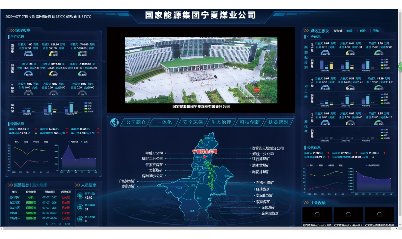 宁夏煤业公司智能化建设现状分析及对策建议当前新一轮科技革命和能源产业变革不断深入和加速,新一代信息技术、物联网技术、智能装备等新技术将大幅提升传统产业发展能级和效率,煤炭生产方式发生巨大转变,实现煤矿安全、绿色、高效、智能开采已成为主流方向[1-4]。《煤矿机器人重点研发目录》《中国制造2025》《关于加快煤矿智能化发展的指导意见》等文件的出台加速了煤矿的智能化建设。全面实施煤矿“四化”建设,推进两化融合是实现煤炭企业高质量发展的必由之路[5-10]。 1 宁夏煤业公司智能化建设创新成果国家能源集团宁夏煤业有限责任公司(以下简称“宁夏煤业公司”)现有14对生产建设煤矿,均为井工煤矿,设计产能8 460万t/a。宁夏煤业公司煤矿智能化建设结合自身及行业现状和国内外技术发展方向,按照“效益、务实、可靠、先进”的原则,实施智慧矿山试点、自动化工作面、智能掘进及辅助生产、固定岗位无人值守、智能选煤全环节改造,积极稳步推进“集中控制、无人操作、有人巡视”的智能生产体系的建设。宁夏煤业公司重点从以下3个方面建设智慧矿山与智慧企业:一是建设以综采、综掘、主运输、生产辅助、固定岗位无人值守、选煤等方面无人操作为核心的智能化生产系统;二是构建经营管控+绩效管理以日清日结为核心的数字化运营体系;三是搭建由生产执行系统+综合安全感知平台形成的以安全管理为核心的智慧化管理体系[11]。 1.1 实施煤炭生产智能化改造,形成智能生产新方式2017年,宁夏煤业公司开始在金凤煤矿、金家渠煤矿进行智能化改造试点,探索智能化系统集成。完成了虚拟化改造、万兆工业环网、4G通信系统、智能视频调速、水电计量、智能移动巡检平台的建设,实现了井上下融合通讯、视频互通、智能巡检以及薄煤层自动化开采、生产辅助自动化控制和管理自主分析。宁夏煤业公司智能管控平台运行界面如图1所示。