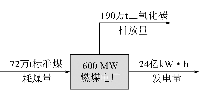 燃料压力(25℃)/MPa能量密度/(GJ·m-3)低位热值/(MJ·kg-1)理论空燃比最小点火能量/MJ火焰传播速度/(cm·s-1)自燃温度/℃氨(NH3)1.0311.818.86.148.006650氢(H2)70.003.0121.034.800.02300520CNG(CH4)25.009.450.014.400.3041630乙醇(C2H5OH)0.1021.226.96.520.1439323汽油0.1032.243.815.400.2940370柴油0.1035.442.515.14-33254 氨能量利用的技术工艺路线主要分为两类:一是直接与传统燃料(煤、天然气)掺混燃烧,二是用于制作固体氧化物燃料电池。 1.1 燃煤锅炉混氨燃烧技术混氨燃烧技术原理简单,利用可燃的氨气替代一定比例的煤粉,掺混后进入锅炉共同燃烧,并通过控制火焰的轴向温度和空燃比,抑制火焰内氮氧化物的生成。国际上,该项技术研发主要由日本政府、企业和科研机构主导。日本石川岛公司(IHI)已建成10 MW规模的煤粉混氨燃烧示范装置[7],日本能源公司(JERA)已制定燃煤掺氨/氢技术路线图。2021年10月日本启动的碧南1 000 MW 热电厂进行了20%混氨燃烧测试。 国内混氨燃烧技术研发刚刚起步。国家能源集团在2021年7月正式启动燃煤锅炉混氨燃烧技术开发与工程示范,目前已完成氨煤混合燃烧机理实验和40 MW洁净低碳燃烧试验平台建设[8],在氨混烧比例达到35%时,经验证燃烧稳定性和燃尽率良好,氮氧化物排放可控。 国内及日本多家科研机构的试验结果表明,燃煤锅炉混氨燃烧可使得煤粉和氨气良好燃尽,燃烧后氮氧化物排放不随混氨比例增加而等比例升高,且可通过分级燃烧等方式显著降低氮氧化物排放。 1.2 燃气轮机混氨燃烧技术相比燃煤锅炉,氨气在燃气轮机中掺混燃烧存在燃烧速度慢、氮氧化物难以控制等问题,可通过燃烧器改造和分段燃烧技术来抑制氮氧化物生成。现阶段,混氨/纯氨燃机尚处于小规模试验验证阶段。以日本三菱[7]动力为代表的企业研究机构已在300 kW小型燃气轮机上进行氨直接燃烧试验,用来验证氨燃烧的稳定性,研究结果表明氮氧化物排放可达到0.15%的规定值。IHI公司利用2 000 kW中型燃气轮机进行氨直接燃烧实证试验,目前已成功完成70%的混氨燃烧试验。三菱自主开发的40 MW氨直接燃烧大型燃气轮机,预计将在2025年实现工业化[9]。 1.3 氨燃料电池技术氨作为直接燃料的固体氧化物燃料电池,其基本原理[10]是将氨直接供给到氧化锆电解质一侧的燃料电极,将空气供给对侧的空气电极,从而在两电极间产生电动势。 目前,日本京都大学、IHI公司等联合研究组已完成1 kW氨燃料电池发电试验,试验表明将氨直接供给电池堆进行发电,可获得与纯氢相当的良好发电特性,直流发电效率可达50%以上,系统成功稳定连续运行1 000 h。芬兰、挪威、德国等国的船舶制造企业正在开展船用氨燃料电池技术研发。国内福州大学等机构联合开发的3 kW氨-氢燃料电池发电站现已交付使用,通过新型低温氨分解催化剂在线制氢,产生氢氮混合气后供燃料电池发电。 2 基于燃煤掺氨发电情景模式的技术经济分析“双碳”目标背景下,燃煤发电行业面临前所未有的转型压力[11],一方面要适应高比例新能源接入下构建新型电力系统的要求,做出变革性的功能定位调整,另一方面要探索减碳路径,突破燃煤高碳属性的硬性制约。对我国煤电行业而言,通过能效提升来减少碳排放的空间已较为有限,煤电燃烧后CCUS和燃料低碳化成为实现深度脱碳的主要技术路径。其中,燃煤电厂掺烧氨能够实现源头降碳,为煤电低碳化转型提供了一条可供选择的路径。 本研究以燃煤发电为基础研究对象,设置了基准方案、基准方案+ CCUS、基准方案+“蓝氨”、基准方案+“绿氨”4种不同的情景模式,后3种情景模式以实现25%的二氧化碳减排量为基准。重点围绕燃烧后CCUS、“蓝氨”(煤制氨+化工过程CCUS)、“绿氨”(新能源电解制氢合成氨)技术路线。研究从当前成本、当前碳减排收益及未来技术进步降本潜力3个维度,对不同情景进行技术经济的对比分析。 2.1 情景一:基准方案基准方案以600 MW燃煤发电机组为研究对象,其基础假定条件如下。 (1)该燃煤发电机组平均供电煤耗为300 g标准煤/(kW·h),系统整体发电效率为41%,标准煤二氧化碳排放系数为2.65(燃烧1 kg标准煤排放2.65 kg CO2),折合度电碳排放强度795 g CO2/(kW·h)。 (2)机组年利用小时数按4 000 h/a计算,即发电量24亿kW·h/a,耗煤量72万t标准煤/a,二氧化碳排放总量190万t/a,如图1所示。后续方案为统一计算,以二氧化碳减排量25%为基准,即减排二氧化碳48万t/a。 (3)标准煤价格按1 500元/t计算,碳交易价格参考近期全国碳市场平均价格按50元/t考虑。