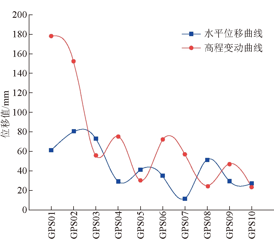 表1 排土场GPS01~GPS10地表位移监测点位移轨迹