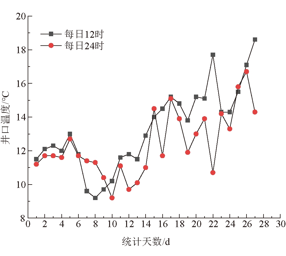 图6 井口温度曲线 由图6可以看出,被加热后的新风通过风道送至井口,井口保温防冻效果显著,项目运行1个月中,当地处于冬季天气寒冷,井口温度始终不低于9 ℃,防冻保温效果非常显著,使得矿井可以稳定满足井口房混风温度不低于2 ℃的要求。