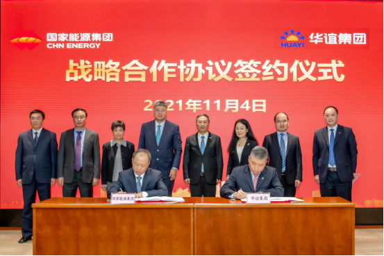 | 11月4日,国家能源集团与华谊集团在上海签署战略合作协议。国家能源集团党组副书记、总经理刘国跃,华谊集团党委书记、董事长刘训峰,总裁王霞,上海市经信委副主任刘平,上海市国资委二级巡视员邵珉出席签约仪式。国家能源集团党组成员、副总经理王树民与华谊集团副总裁陈耀分别代表双方签订战略合作协议。