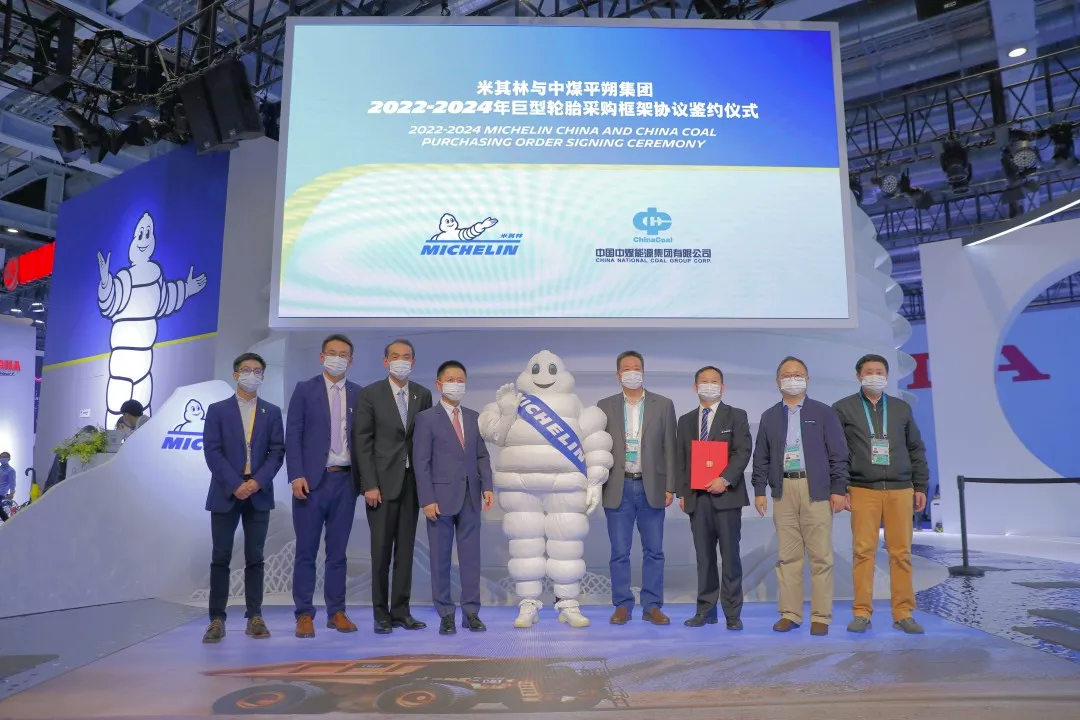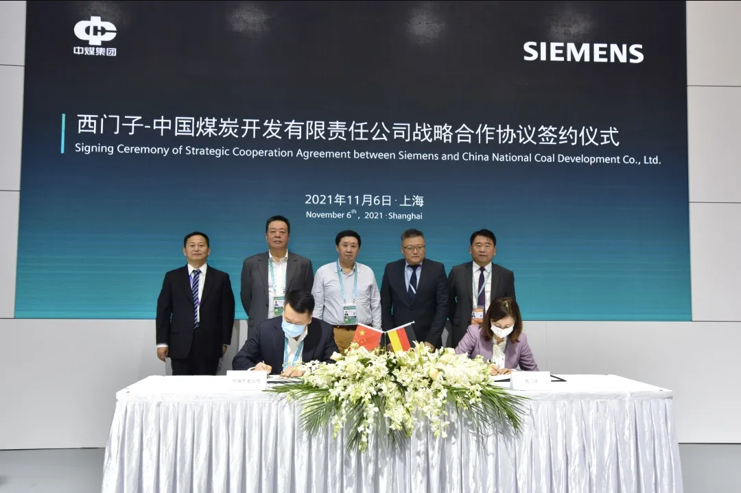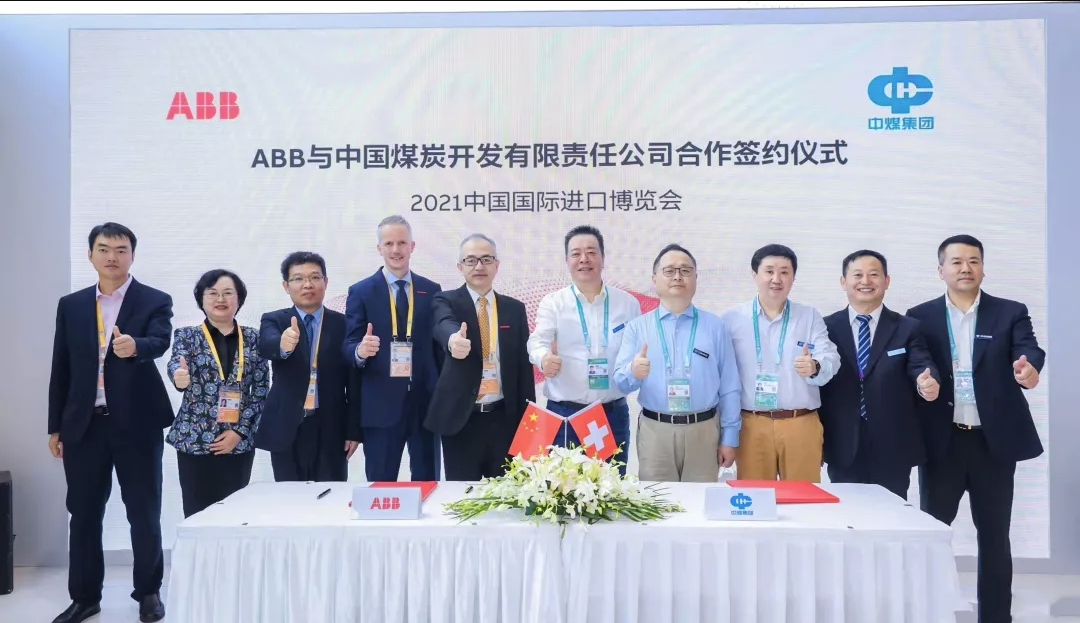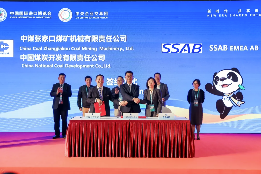 | 11月6日,中煤集团在第四届中国国际进口博览会现场与来自7个国家和地区的10家企业进行现场签约,其中与米其林、ABB、西门子等企业举办3场展台签约活动,与SSAB、久益、小松、山特维克、庄信万丰、斯凯孚、西马格等公司在国资委展台举办了集中签约,就钢板、轴承、催化剂及采煤机、矿用卡车、电铲、提升机、掘锚机配件等签署了采购协议,签约总金额创历届新高。