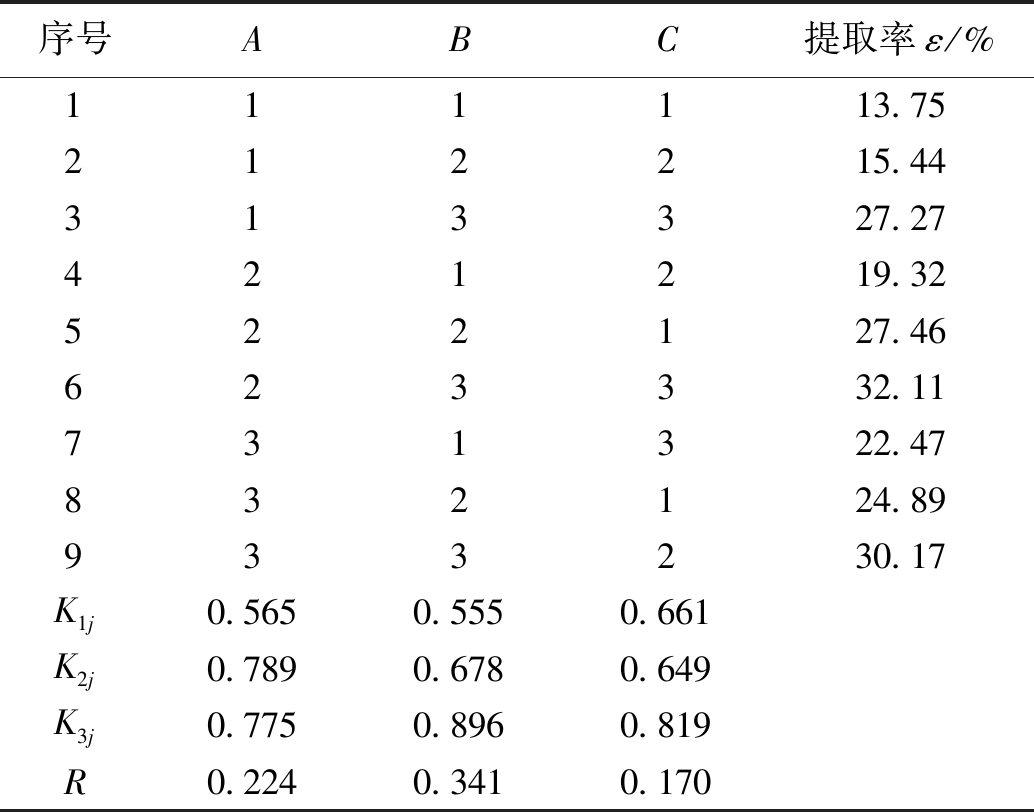 序号ABC提取率ε/%111113.75212215.44313327.27421219.32522127.46623332.11731322.47832124.89933230.17K1j0.5650.5550.661K2j0.7890.6780.649K3j0.7750.8960.819R0.2240.3410.170 表4 蜡样芽孢杆菌降解氧化煤提取腐殖酸正交实验结果