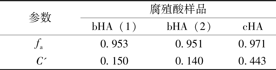 图5 cHAFTIR分峰 腐殖酸FTIR拟合结构参数fa和C′见表7。 表7 腐殖酸FTIR拟合结构参数
