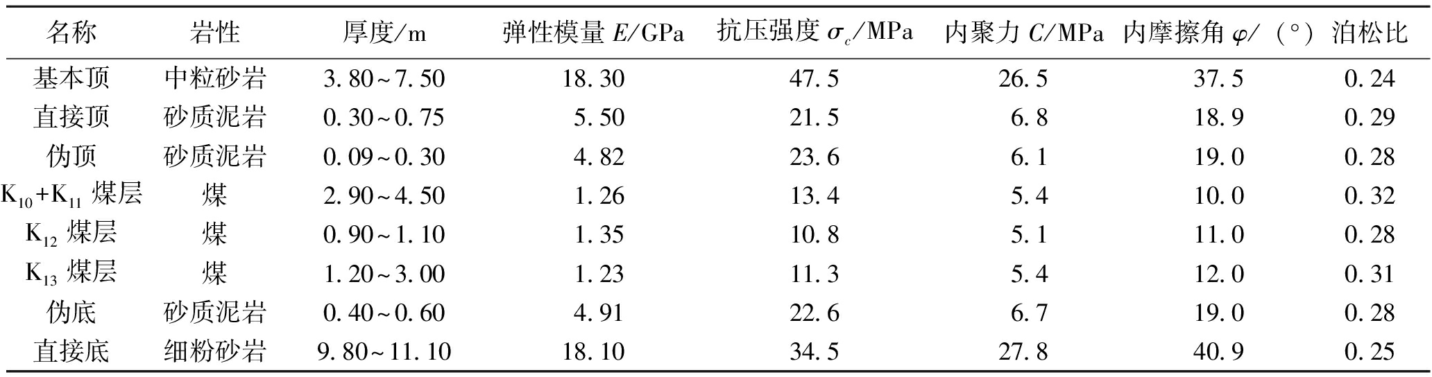 图1 31111工作面采掘平面 表1 煤层顶底板参数