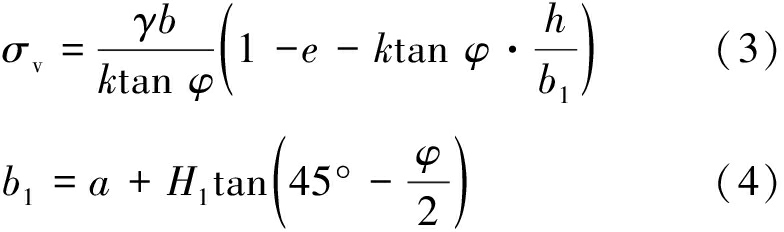 图5 煤层开采覆岩破断规律 基于太沙基理论,采区巷道围岩压力计算公式如下: 垂直压力: