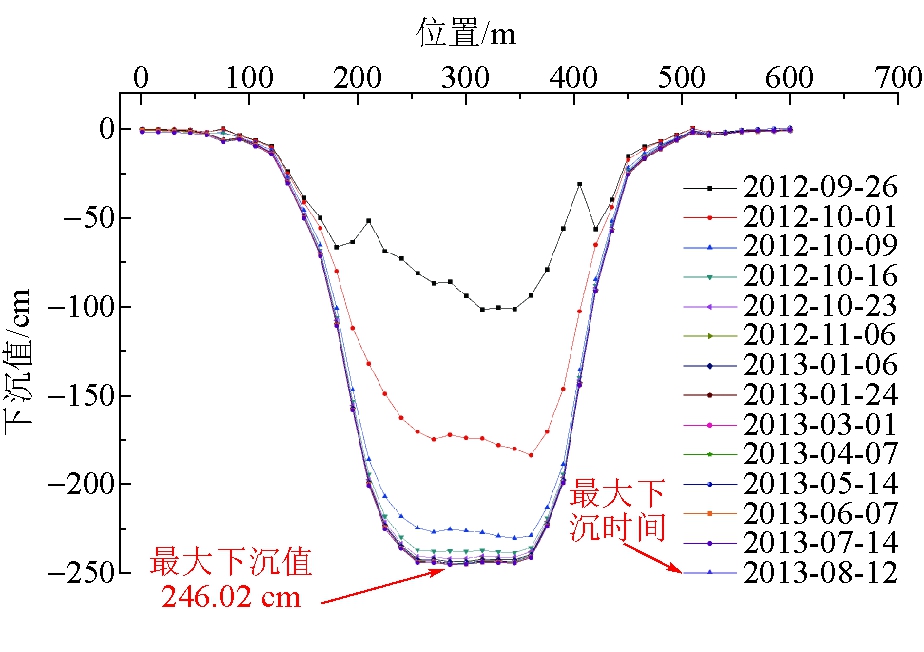 图2 高头窑煤矿23101综采工作面沿倾向下沉曲线