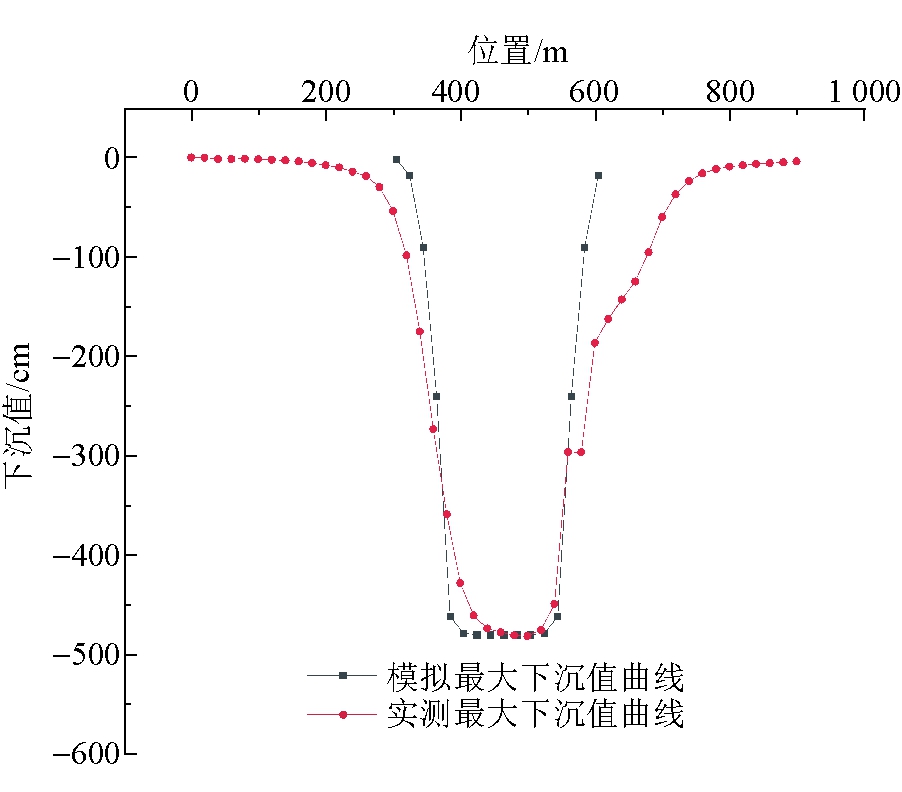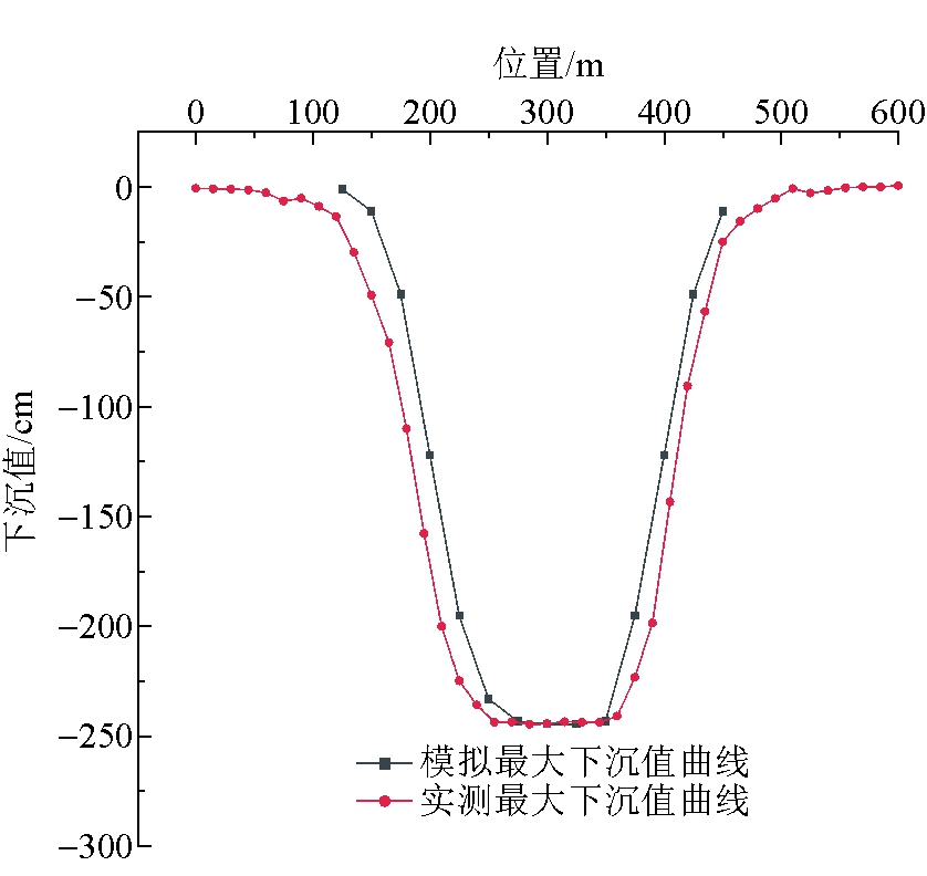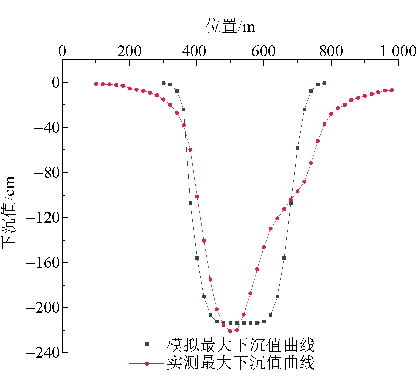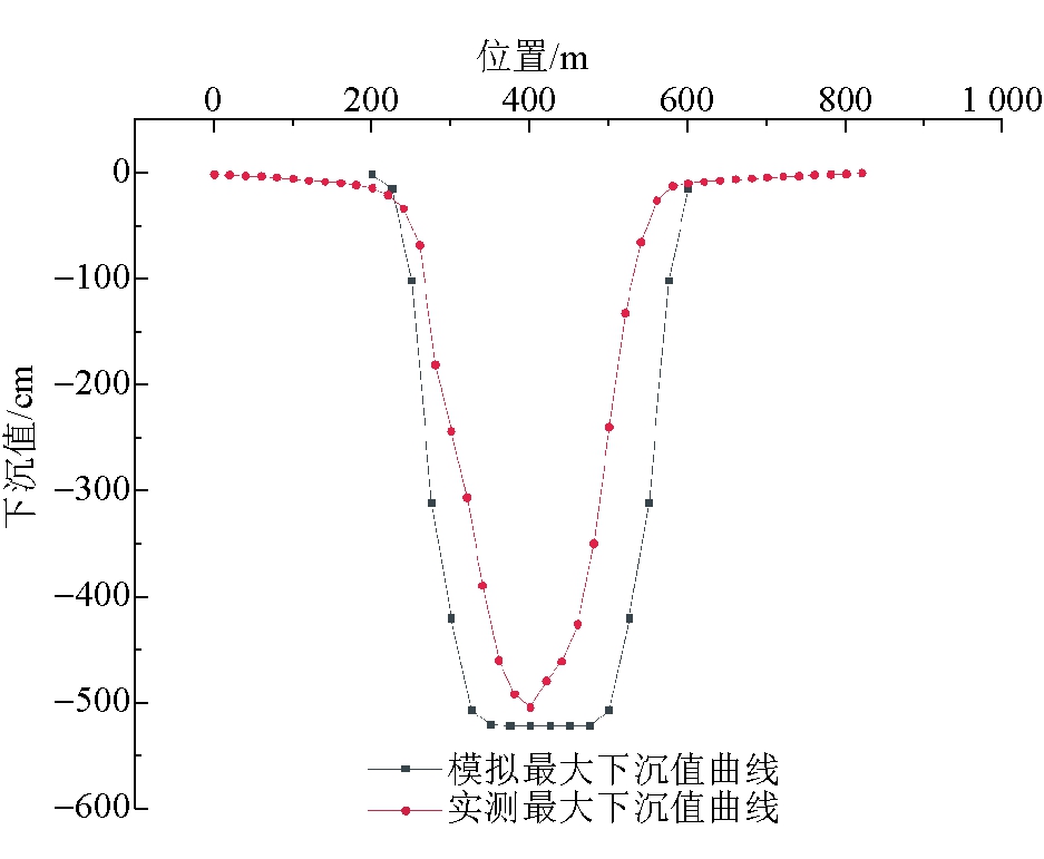 图6 高头窑煤矿23101综采工作面倾向最大下沉曲线对比