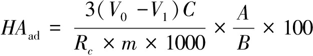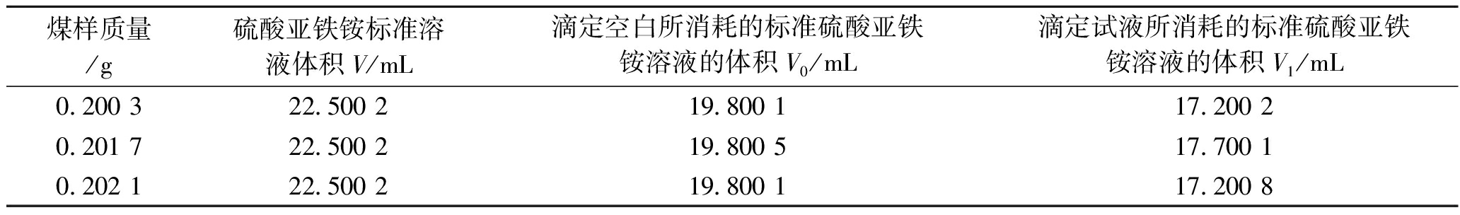 图1 某种腐植酸的结构 腐植酸分子结构中的各种含氧官能团决定了其与金属离子的络合能力、亲水性、吸附等特性[2],腐植酸的主要化学性质包含以下几点。 (1)胶体性质。腐植酸含有羧基和酚羟基,所含的氢离子会发生电离,使其带负电。腐植酸是一种亲水胶体,低浓度时是真溶液,没有粘度;而在高浓度时则是一种胶体溶液,呈现胶体性质。 (2)酸性。腐植酸分子中含有-COOH、-OH等基团,使其具有弱酸性。 (3)离子交换性。腐植酸能与金属离子反应,生成弱酸盐,所以具有较强的离子交换能力。 (4)络合性能。腐植酸可以与一些金属离子形成络合物。 (5)亲水性。腐殖质是一种亲水胶体,具有强大的吸水能力,即使是风干的腐植酸也可能含有25%的水分。 (6)稳定性。腐植酸在水溶液中常呈线性结构,较易形成分子聚合体,具有较好的稳定性。 1.3 腐植酸提取方法腐植酸提取方法主要有3种,分别是酸提取剂法、碱溶酸色谱法和微生物溶出法[3]。酸提取剂法具有提取工艺简单、操作方便、生产周期短、价格低的特点;碱溶酸色谱法应用广泛,是目前工业生产领域主要应用的提取方法,该方法具有操作简单、产率高的特点;微生物溶出法是通过温和的微生物溶出反应,将腐植酸进行清洁转化,产物的生物活性也较高,但反应时间长、产率低,目前尚处于试验研究阶段,尚未实现产业化。 1.4 腐植酸应用(1)农牧业的应用。腐植酸是一种良好的植物生长调节剂,对提高作物的抗旱性和抗寒性、促进农作物生长发育具有重要作用[4-6]。腐植酸对农药的影响主要体现在其对农药的吸附行为,即对分解速率的控制。同时,腐植酸具有肥力效应,可直接应用于田间[7-9],促进植株发育,植物根系吸收腐殖质,可以提高养分利用率,增强作物抗逆性,提高作物品质。此外,腐植酸中的酚羟基能增强植物的抗病性、抗旱性和抗寒性,从而获得良好的收成。腐植酸在养殖方面的应用也积累了不少数据,例如国外畜牧界总结了天然腐植酸用作猪饲料添加剂的6个优点,一是调整体内盐、碱平衡;二是促进生长;三是增强体质和免疫力;四是仔猪断奶后迅速增重;五是降低死亡率;六是消除粪便臭味[10]。 (2)工业应用。腐植酸在工业上有着广泛的应用[11],主要用作添加剂。在石油生产中,腐植酸作为钻井液添加剂,还可以提高出油量;腐植酸用作失水剂、稀释剂和页岩稳定剂,还可提高耐高温、耐盐和耐钙水平。 (3)环境保护领域的应用。腐植酸具有成本低、来源广、孔隙结构大、比表面积大和含有多种活性官能团等优点,常用于吸收重金属,可用于修复工业发展造成的土壤污染,不仅能产生良好的经济效益,还可以有效增加土壤中有机成分的含量 [12-13]。 2 风化煤中提取腐植酸的试验装置及方法2.1 材料与设备(1)试验中使用的试剂及规格:硫酸亚铁铵化学纯;重铬酸钾化学纯;邻菲罗啉(GB/T 1293)化学纯;硫酸亚铁(GB/T 664-2011)化学纯;焦磷酸钠化学纯;NaOH化学纯;HCl分析纯,36%;H2SO4 (GB/T 625-2007)化学纯,95%;KOH分析纯。 (2)试验中使用的主要仪器和设备:5、10、15 mL的移液管;250 mL锥形瓶;10、100 mL量筒;50 mL滴定管;250 mL分液漏斗、50 mL漏斗;50、100、200、1 000 mL的容量瓶;250 mL烧杯;上海一恒科学仪器有限公司生产的DHG-9030A型电热恒温鼓风干燥箱;上海菁海仪器有限公司生产的FA2104N型电子分析天平;江苏新春兰科学仪器有限公司生产的HH-M8型水浴锅;上海亚荣生化仪器厂生产的SHZ-III型循环水真空泵;上海超亿泵阀制造有限公司生产的SF-250型粉碎机。 2.2 样品采集及处理实验室用煤样为天宝红沙梁煤矿风化煤,首先对煤样进行粉碎,并将其研磨至小于0.025 mm后,将煤样放入烤箱中,在110~120 ℃下干燥 2 h。 2.3 煤中腐植酸总产率的测定2.3.1 试验方法 煤样中的腐植酸部分以游离态存在,另一部分与金属离子形成的腐植酸难以溶解。为了确定煤样中腐植酸的总产率,需要先进行化学处理,将组合后的腐植酸转化为游离态。试验步骤如下所述。 (1)称取粒度小于0.2 mm的常规分析煤样0.2 g,放入250 mL的锥形瓶中,加入焦磷酸钠100 mL,摇湿后盖上锥形盖。在(100±1)℃处放置1个小漏斗在水浴中(当温度未达到时,加入所需量的甘油调节温度),关火2 h,每30 min摇晃一次,使煤样下沉。 (2)取锥形烧瓶冷却至室温,将所有提取物及残留物转移至200 mL的容量瓶中,用蒸馏水稀释至结垢后摇匀。在优质滤纸上以中速干燥过滤,将最初过滤的10 mL溶液弃掉后,再过滤50~100 mL 滤液以供测量。 (3)将5 mL滤液吸入250 mL锥形瓶中,再转入5 mL浓度为0.4 mol/L的重铬酸钾溶液和15 mL浓度为18.4 mol/L的浓H2SO4中,在(100±1)℃的水浴中加热氧化30 min后取出冷却至室温,用蒸馏水稀释至100 mL左右,冷却后加入3滴邻菲罗啉指示剂,用NH4Fe(SO4)2标准溶液还原至砖红色。另外取2份5 mL浓度为0.4 mol/L的重铬酸钾,准确加入5 mL焦磷酸钠碱提取物和15 mL的浓H2SO4中进行氧化滴定,测定空白值。滴定所消耗的硫酸亚铁铵溶液的体积见表1。 2.3.2 煤中腐植酸含量的计算 (1)硫酸亚铁铵标准溶液浓度见式(1): (1) 式中:C——硫酸亚铁铵标准溶液浓度,mol/L; V——硫酸亚铁铵标准溶液体积,mL。 由式(1)可以得出,硫酸亚铁铵标准溶液的浓度为0.111 1 mol/L。 (2)风化煤中腐植酸总产率见式(2): (2) 式中:HAad——风化煤中腐植酸总产率,%; V0——滴定空白所消耗的标准硫酸亚铁铵溶液的体积,mL; V1——滴定试液所消耗的标准硫酸亚铁铵溶液的体积,mL; R