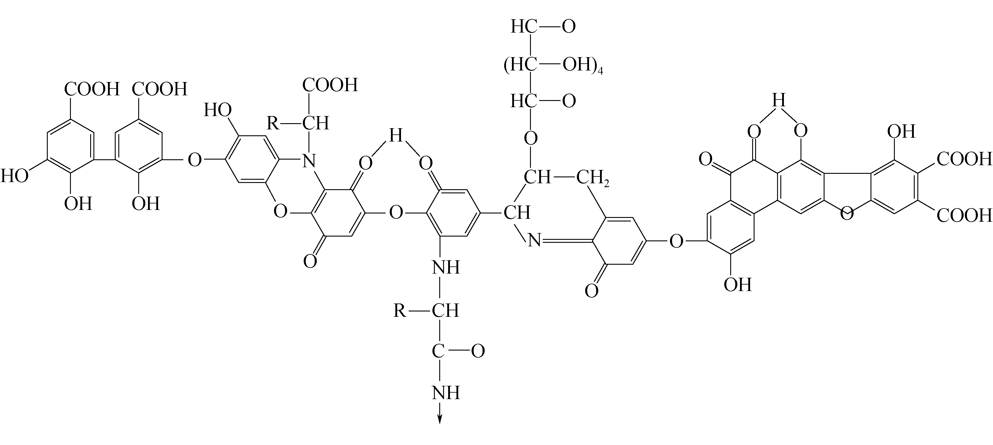 ★ 清洁利用 ★ 天宝红沙梁煤矿风化煤腐植酸提取工艺研究随着人民生活水平的提高,人们对饮食、医疗、环境等要求越来越高,开发和利用高产、高纯度的腐植酸是解决这些问题的主要措施之一。煤炭腐植酸广泛分布在泥炭、褐煤及风化煤中,是开发利用腐植酸的资源之一。窑街煤电集团有限公司天宝红沙梁煤矿(以下简称“天宝红沙梁煤矿”)丰富的风化煤资源为腐植酸的开发应用提供了原料保障,从中提取的腐植酸可以实现资源的二次利用并减少环境污染,创造更大的经济价值。 笔者从风化煤综合利用的角度,以天宝红沙梁煤矿风化煤为研究对象,研究了提取剂的类型和浓度、浸泡时间、固液比对腐植酸提取的影响,用以确定最佳的工艺条件。研究不同催化剂对腐植酸萃取率的影响并优化高效催化剂,可为腐植酸的进一步制备和应用开发提供依据。 1 腐植酸概述腐植酸是自然界中最常见且复杂的天然有机化合物之一,是微生物在一定的自然条件下,通过物理和化学作用,长期降解转化而形成的一种棕色或黑色物质[1],主要由C、H、O、N、S等元素组成,是一组含芳香结构、性质类似的无定性酸性物质组成的混合物。 1.1 腐植酸组成及分类腐植酸主要存在于泥炭、褐煤、风化煤、土壤、河流和湖泊沉积物、牲畜粪便、腐烂的秸秆和城市污泥中。根据腐植酸的原料来源可分为人工腐植酸和天然腐植酸,人工腐植酸通过化学变化生成腐植酸,主要有生化腐植酸和风化次生腐植酸;天然腐植酸主要包括土壤腐植酸、水体腐植酸和煤炭腐植酸。腐植酸按状态可分为游离腐植酸和结合腐植酸。根据腐植酸溶解性可分为黄腐酸、黑腐酸和富里酸,从黄腐酸到富里酸,碳含量相对逐渐增加,而氢含量则相对逐渐减少。 1.2 腐植酸结构和性质腐植酸分子中含有许多官能团,这些官能团影响着腐植酸的应用和性质。 通过热解分析、13C-NMR和电子显微镜等技术手段对腐植酸的结构进行研究分析,并绘制了某种腐植酸结构如图1所示。
