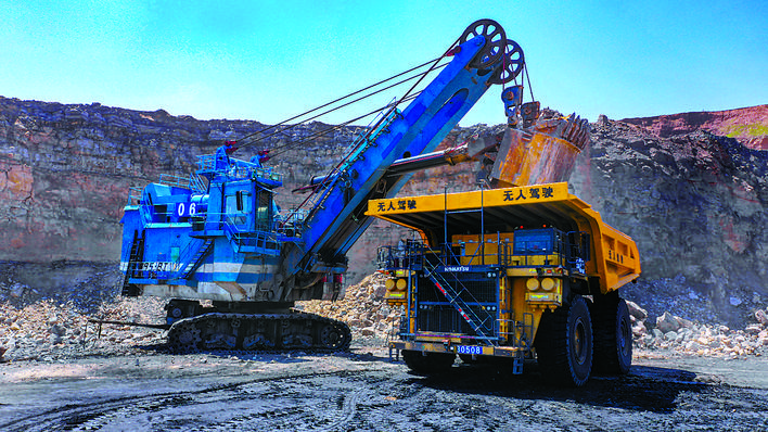 F5G技术在河南能源永煤公司陈四楼煤矿应用后,为矿区办公网络、视频监控、井上信息回传提供了超大带宽接入。 操作手段 人工近距离操作➡无人远程遥控➡系统自适应调控 ★关键词:无人 少人 高性能 ▶中国煤炭科工集团沈阳研究院自主研制了首台搭载华为矿鸿系统的煤矿四足巡检机器人。它将矿鸿系统与机器人运动、决策以及交互系统相融合,具有避障越障、音频识别、视觉识别等功能。 ▶国家能源集团准能集团实现多台无人驾驶矿用卡车与电铲多工作面同时编组运行作业。“准能集团露天煤矿无人运输作业系统关键技术研究与应用”项目通过搭建一套包括地面控制中心系统、车地无线通信系统、车载控制系统等完整的无人驾驶控制系统,实现矿用自卸车“装、运、卸”典型作业过程的完全无人自主运行。 ▶中国煤科太原研究院研发制造的智能快掘系统,是国内首套复杂地质条件下以掘锚机为龙头的智能掘进成套装备。该系统以井下中央集控中心为载体和中转、集群设备多信息融合网络为通道、工况监测与故障诊断系统为感知,研发了成套装备一键启停、自动截割、自主行走、自动化锚护等关键技术,实现了快速掘进成套装备集中远程控制和自动化作业,创建了“无人跟机作业,有人安全值守”的掘进新模式。 ▶河南省首套全系统煤矸分拣机器人在河南能源化工集团义煤公司孟津煤矿正式投入使用。此套煤矸智能分拣系统采用机器视觉识别技术,360度全角移位,并可根据产品特征对抓取过程进行相应调整,实现对目标特征的自动识别和抓取作业,在模糊、倾斜、光照不均、背景杂乱等情况下均保持高性能表现。