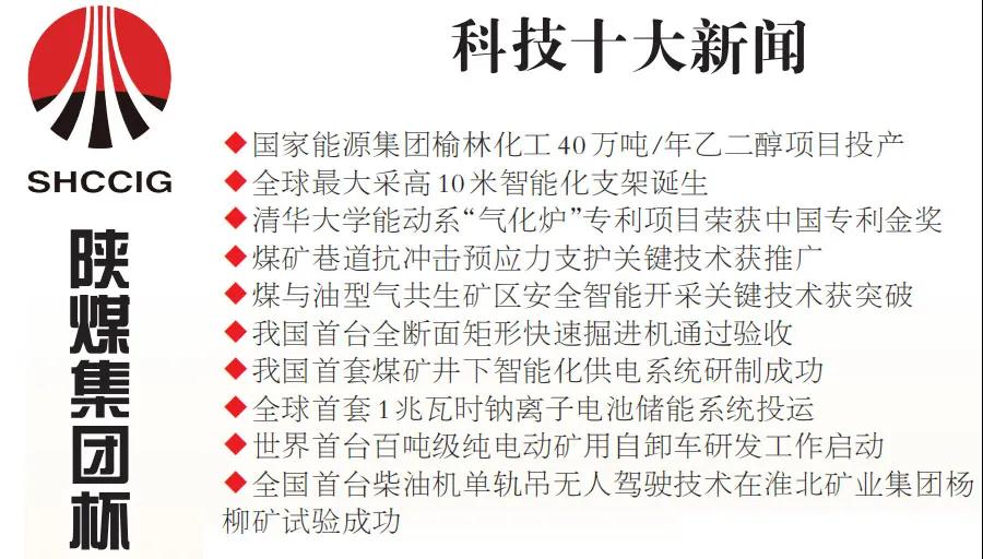投产后的合成气蒸汽联产气化炉 4、煤矿巷道抗冲击预应力支护关键技术获推广 11月,由中国工程院院士、中国煤炭科工集团首席科学家康红普及其团队主要完成的煤矿巷道抗冲击预应力支护关键技术获得2020年度国家技术发明奖二等奖。动静载锚杆力学性能综合测试台是国际上唯一一套能够同时测试锚杆复杂受力状态及动静载组合加载力学性能的设备,也是该项目的核心发明点之一。此外,该项目发明了高冲击韧性、超高强度、低成本预应力锚杆材料和制造工艺及高预应力施加设备,发明了新型钻锚注一体化锚杆、锚固与注浆材料以及配套施工设备。这些发明点经系统集成后,形成了煤矿巷道抗冲击预应力支护成套技术体系,在冲击地压、深部高应力及强采动巷道中得到成功应用,显著提高了煤矿巷道支护技术水平。目前,该技术已在18个矿区推广应用。