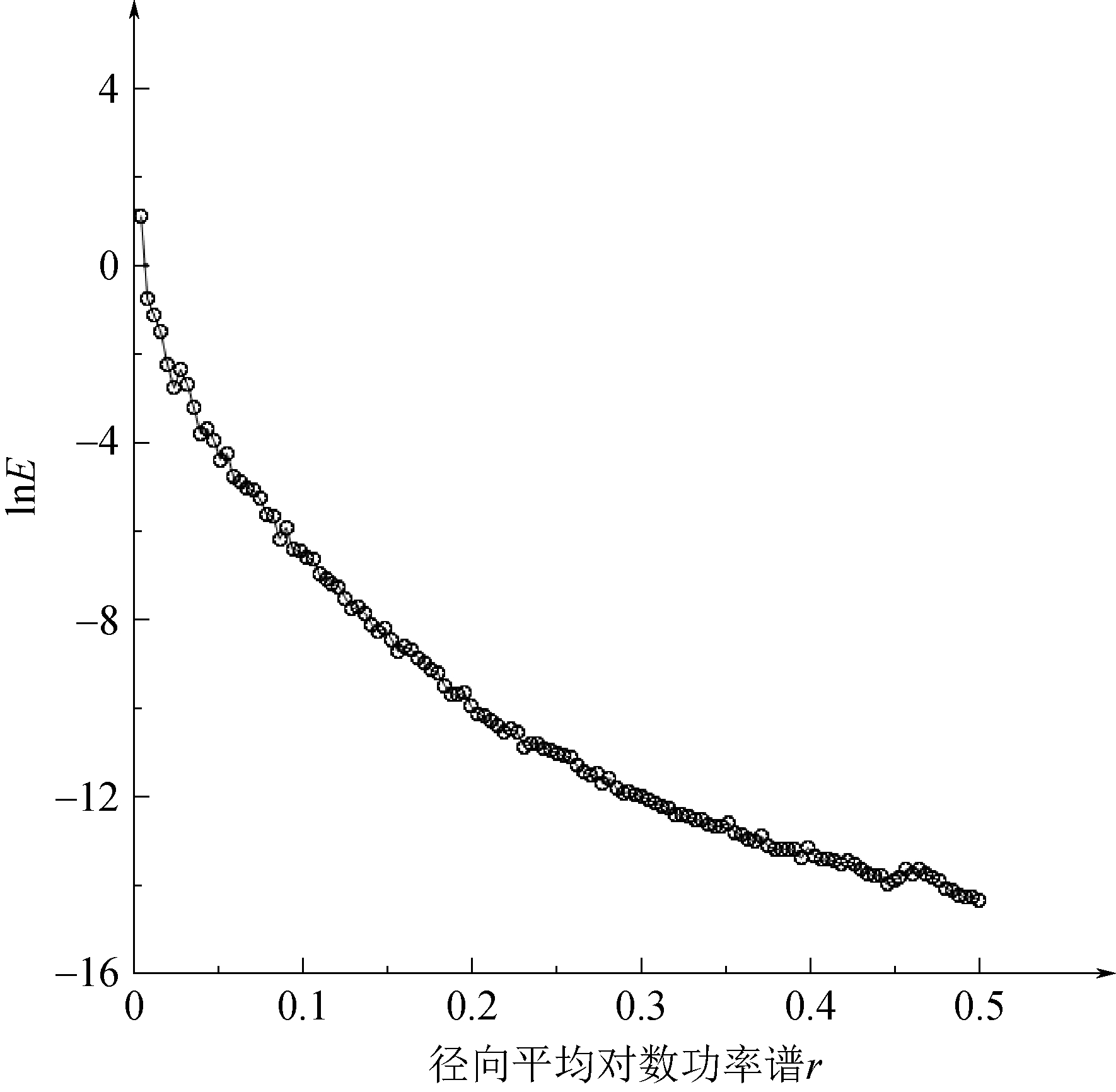 图5 工区ΔT上延600 m磁异常图 3.4 场的分离—匹配滤波法从波谱角度分析,区域场以低频成分为主,局部场以高频成分为主[21]。采用提取不同波数成分的场就可以完成区域场与局部场的分离。匹配滤波法是常用的分离异常的方法,其数据处理过程是先确定匹配滤波算子W1、W2: (6) (7) 式中:B——物性参数; b——加权系数; H——场源深度,m; h——上顶埋深,m; r——径向波谱。 对实测数据的波谱乘以因子W1和W2匹配滤波算子就可以分别获得深部源和浅部源各自的异常场。从匹配滤波因子式(6)、式(7)可知,为应用匹配滤波方法须通过径向对数功率谱先求得H、h、b、B等参数值。