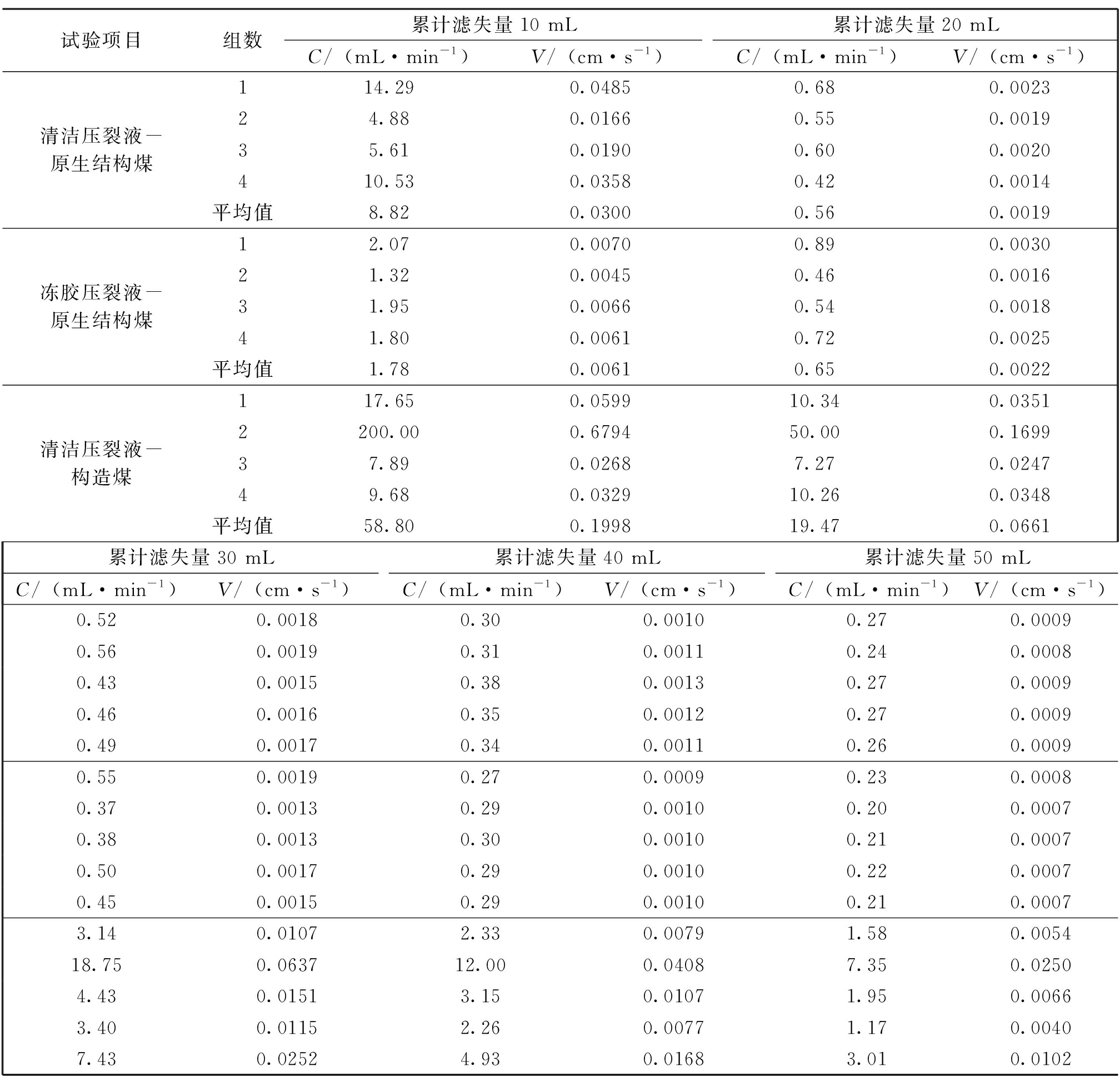 基于渗水试验的煤岩压裂液静态滤失特征分析