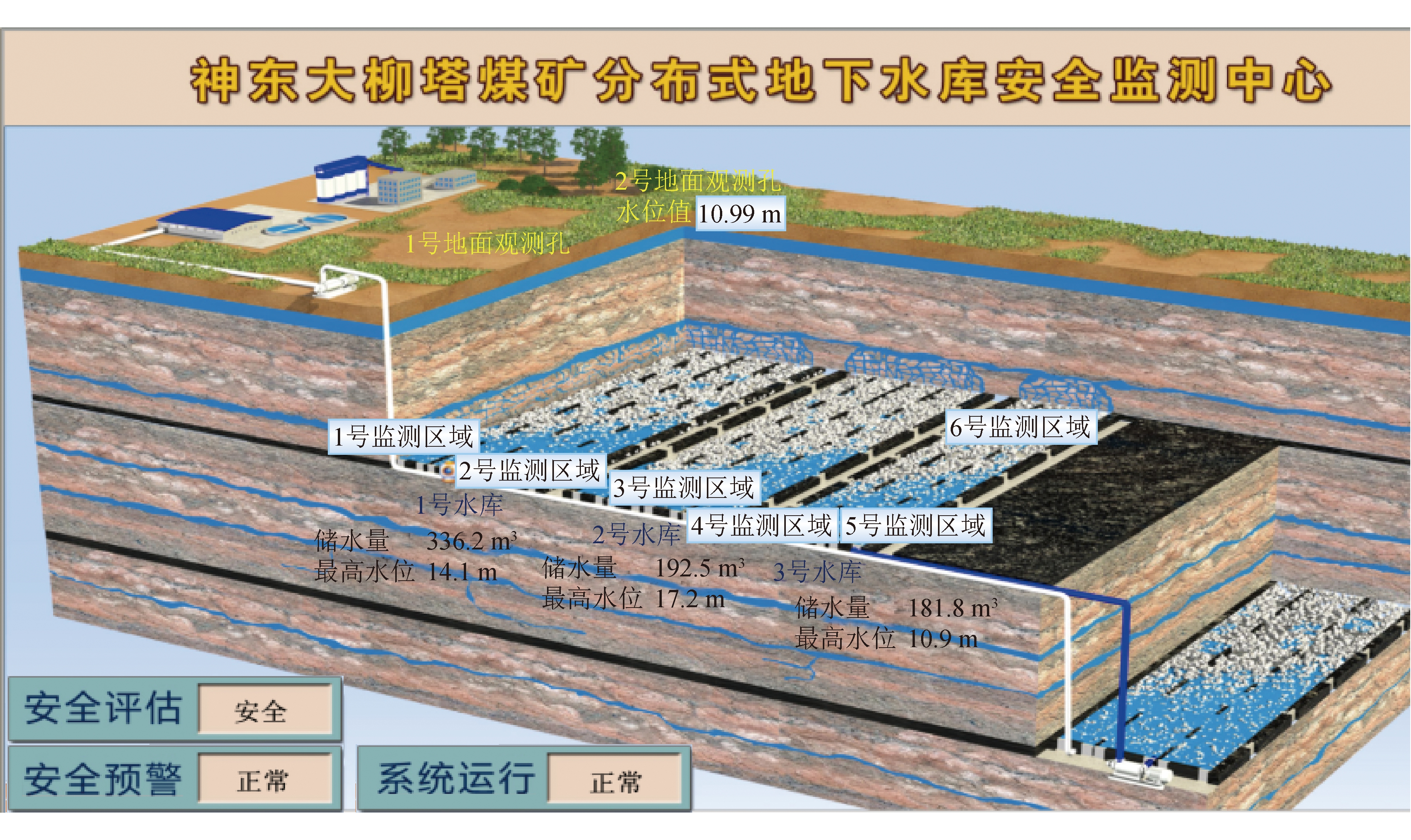 图6 大柳塔煤矿分布式地下水库安全监测