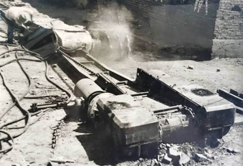 1959年,鸡西矿务局与鸡西煤矿机械厂以康拜因、截装机为基础,改制出浅截式滚筒采煤机,被称作“鸡西型滚筒康拜因”,这是我国第1台自制滚筒采煤机。