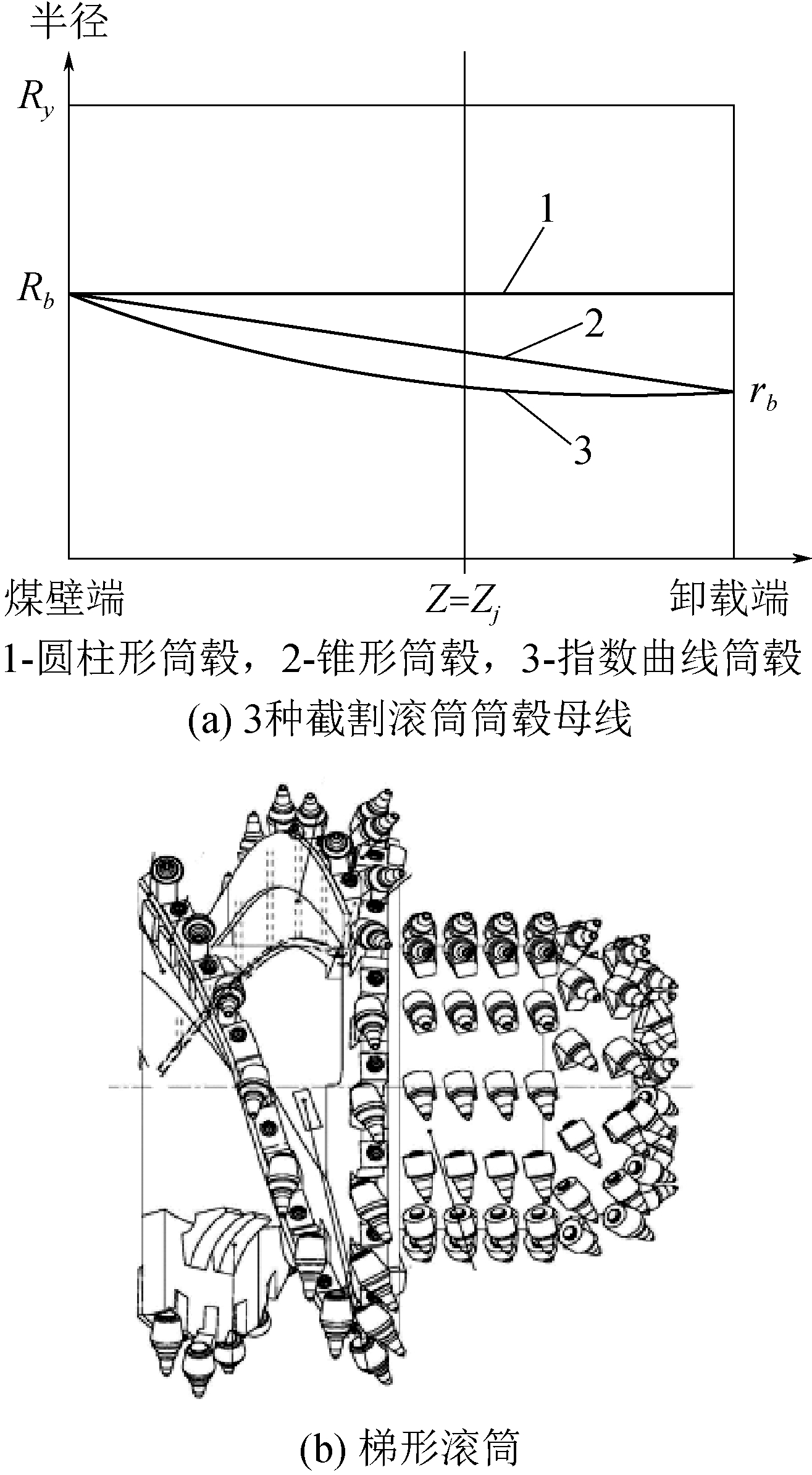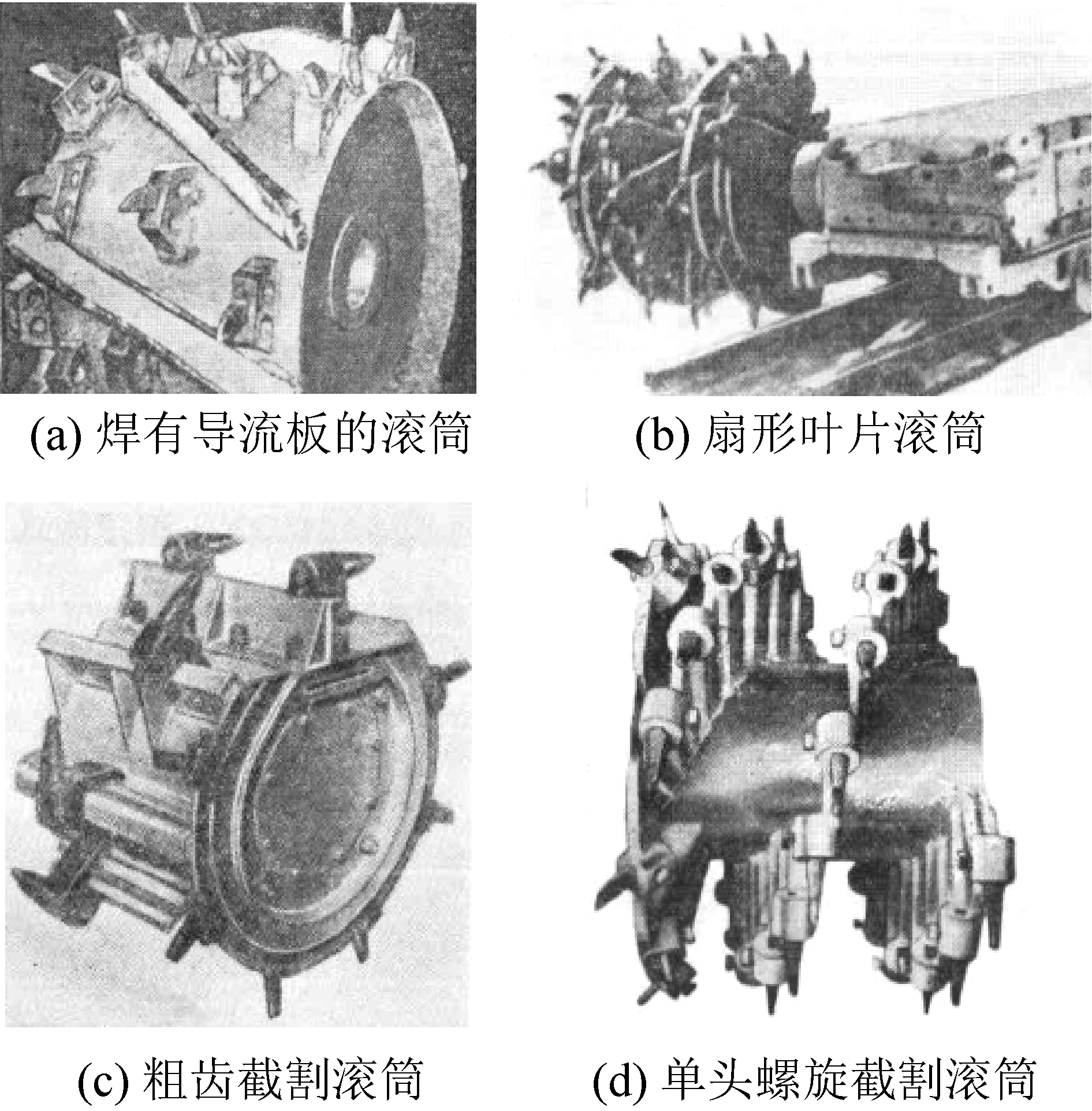 为了提高截割效率,截割滚筒不断改进,出现了鼓形截割滚筒、螺旋截割滚筒、端铣截割滚筒、曲线截割滚筒、阶梯截割滚筒等构型。