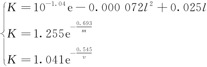 1982年,前苏联学者Ф. П. 别达得出了采煤机可靠性与工作面生产状态的影响关系,他根据乌克兰契尔沃诺格拉德斯克煤层(厚度0.6~1.8 m)运行的КМ-87采煤机的故障数据,得出采煤机有效度与工作面长度、煤层厚度和采煤机牵引速度的回归关系[6]: