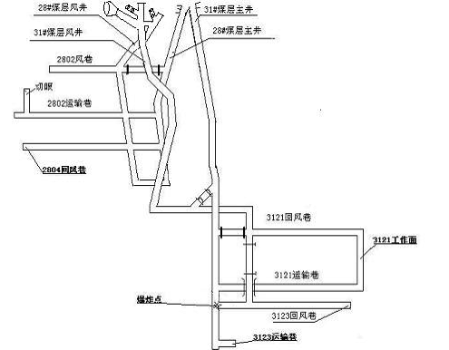 一、矿井概况 嫩草冲煤矿位于毕节地区纳雍县鬃岭镇,属私人合伙企业,设计生产能力3万吨/年矿井,持有煤炭生产许可证、采矿许可证和工商营业执照,无安全生产许可证。 矿井主采28#煤层、31#煤层及32#煤层,煤层平均倾角140,煤种为无烟煤,高瓦斯矿井。 斜井开拓,沿31#煤层、28#煤层各开拓一条主提升斜井,分别在31#煤层、28#煤层各形成一套生产系统,两套生产系统共用同一回风井。事故发生时,该矿井下有5个作业点,分别是31#煤层3121采面、3123运输巷掘进头、3123回风巷掘进头三个作业点和28#煤层2802采面开切眼、2804回风巷掘进头两个作业点。矿井供电10KV农网单回路供电,配备一台75KW柴油发电机备用,但备用发电机从未带负荷运行。采用放炮落煤,采面人工攉煤,搪瓷溜槽自溜,运输巷人力推车运输,斜井绞车提升。通风方式为中央并列式,通风方法为抽出式,主要通风机为30KW轴流式风机,备用通风机为15KW离心式风机,掘进头采用局部通风机供风。 在事故发生时井下停电停风,井下30人中18人撤出地面,12人在井下休息等待恢复供电。 二、事故发生经过及抢险过程 4月30日早班,嫩草冲煤矿出勤30名工人,其中:31#煤层3121采面7人,3123运输巷掘进头4人,3123回风巷掘进头4人,安全员1人,瓦斯检查员1人,机电工1人,共计18人;28#煤层2802采面开切眼5人、2804回风巷5人,安全员1人,瓦斯检查员1人,共计12人。 4月30日10时,接村民报告鬃岭供电线路中吊主线83#电杆湖坝分支线烧断后,鬃岭供电所在未通知嫩草冲煤矿的情况下,按照纳雍县电力公司调度室指令“将10kv中吊线013断路器由运行转线路检修”,并于11时28分开始停电检修。嫩草冲煤矿在停电后打电话到鬃岭供电所询问停电情况,鬃岭供电所答复需要40分钟才能恢复供电。 嫩草冲煤矿停电后,未按规定启动备用电源,全矿井停电停风。28#煤层作业人员全部撤出地面,31#煤层除6名工人撤出地面吃饭外,还有包括安全员、瓦斯检查员、机电工在内的12人未及时撤出地面,在靠进风主斜井的3123回风巷等待送电。 12时40分,供电线路检修完毕,恢复供电。嫩草冲煤矿电钳工张永发现来电后,就往配电房准备往井下送电。张永还未打开配电房的门,发现主井口冒出黑烟。后经调查,井下已发生瓦斯爆炸。 三、事故直接原因 矿井停电停风后,井下瓦斯积聚达爆炸浓度。在31#主斜井与3123回风巷掘进头交岔口处休息的矿工携带的矿灯失爆产生火花,引起瓦斯爆炸。 四、主要教训 1、嫩草冲煤矿安全生产主体责任不落实,安全生产管理混乱。一是不执行停电停风撤人制度;二是矿井停电后不及时启动备用电源;三是不按照规定管理矿灯,所使用矿灯大部分失爆(事故发生后,抽查了10盏矿灯,有8盏失爆);四是未按规定对工人进行安全教育培训。 2、纳雍县电力公司及鬃岭供电所不按规定停送电。在接到村民报告后对供电线路进行临时停电检修作业时,违反《中华人民共和国电力法》、《电力供应与使用条例》(国务院令第196号)、《供电营业规则》(电力工业部令第8号)有关规定,忽视沿线各煤矿用电安全,在长达1小时12分钟的时间内不按国家规定通知煤矿用户。纳雍县电力公司及鬃岭供电所管理混乱,安全意识和服务意识差,严重影响煤矿企业(一类用户)的安全生产。 纳雍县嫩草冲煤矿”4.30”特大瓦斯爆炸事故示意图