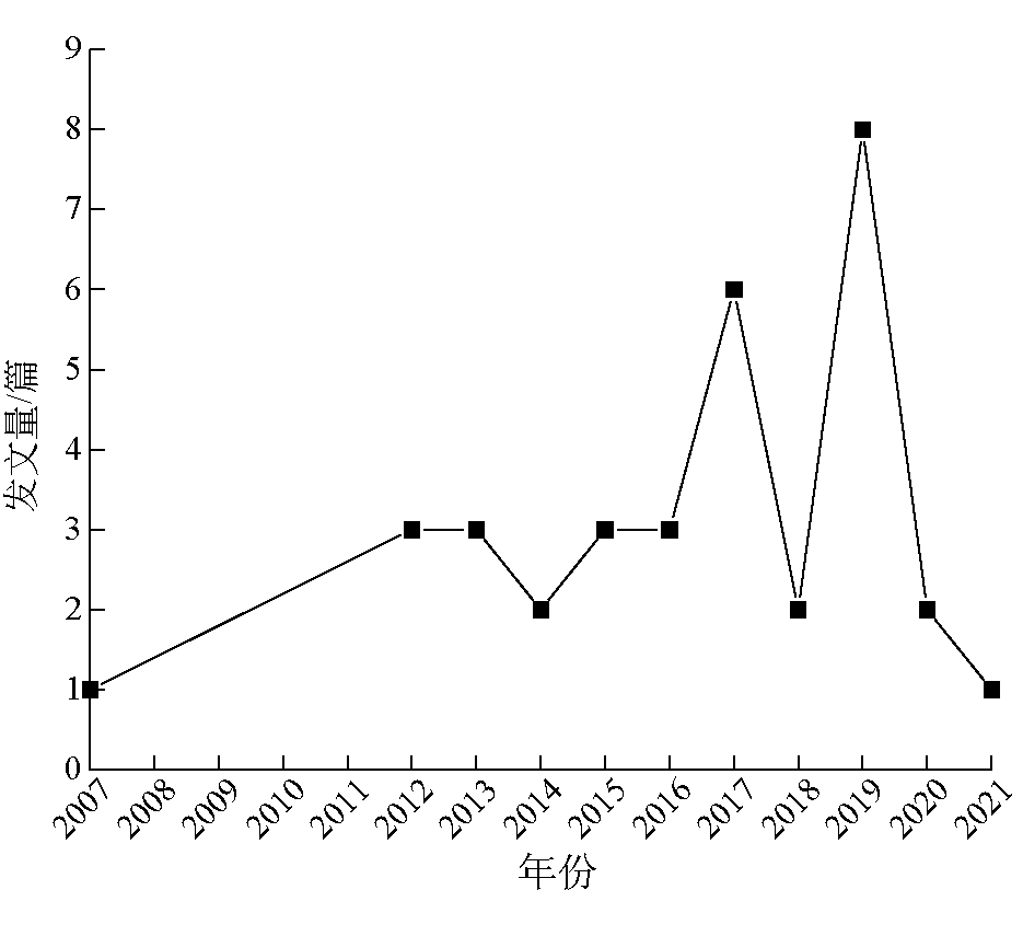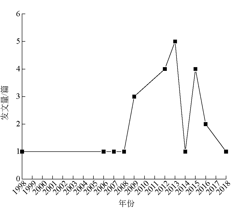 图2 “矿井火灾避灾路径/路线规划”或“煤矿火灾逃生路径/路线规划”主题文献发表统计 表2 矿井火灾避灾路径研究代表性文献