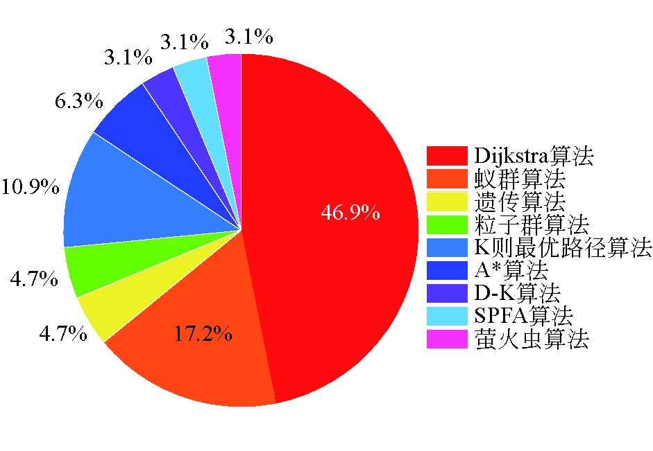 图4 “矿井/煤矿瓦斯/火灾/水灾避灾/逃生路径/路线规划”主题文献所用算法所占比例 表4 常用路径规划算法对比表
