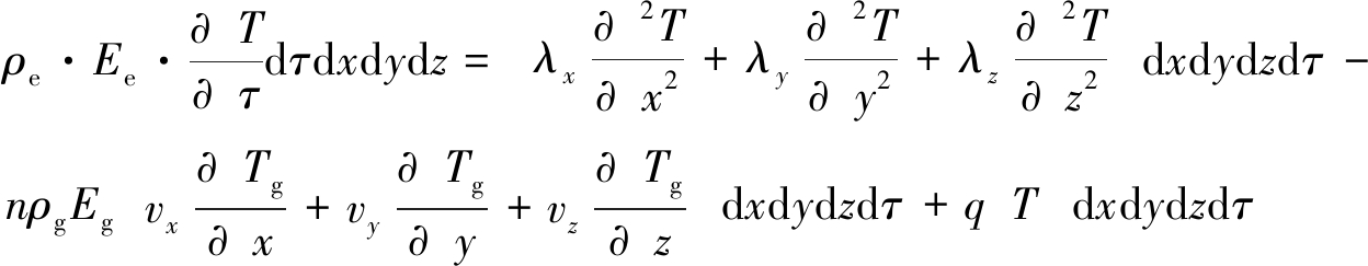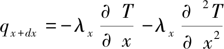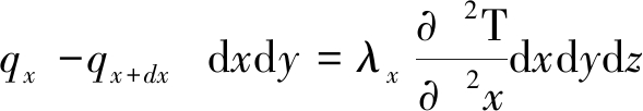 图2 煤体能量守恒单元示意 将式(3)按泰勒级数展开至第2项得到: (4) 式中:qx+dx——微原体流出x方向的热能;