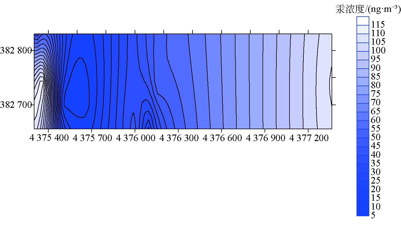 图7 10号火区汞浓度等值线 表1 煤中汞含量测试数据