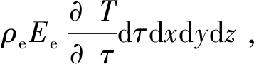式中:vy、vz——风流在y、z方向的流速,cm/s。 假想煤田火区中的煤在自燃过程中,单位体积单位时间内的煤与氧反应释放的热能为q(T),则在微元体dxdydz中,单位时间内产生的热能为q(T)dxdydz;在时间dτ内,微元体中煤体由于温度升高所接收热能为