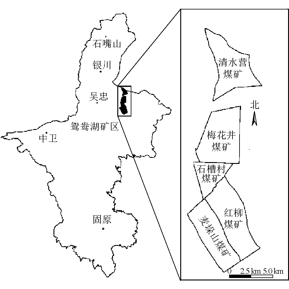 图1 鸳鸯湖矿区及各矿井平面位置 表1 鸳鸯湖矿区各矿井直罗组下段含水层概况