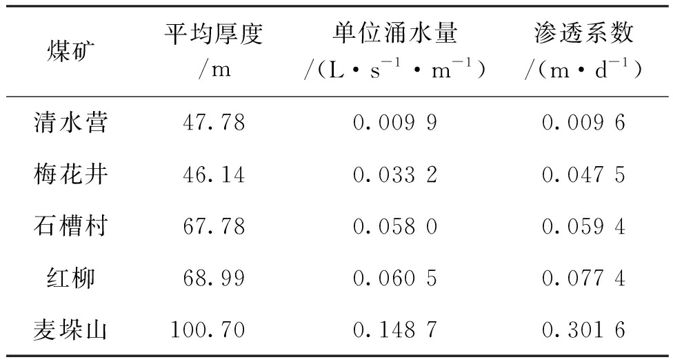 ★ 煤矿安全 ★ 宁东煤田鸳鸯湖矿区煤层顶板水害防控技术与应用煤炭在我国一次能源结构中占60%左右,在未来几十年内仍将是我国的主体能源。随着我国东部地区煤炭资源逐渐枯竭,煤炭生产重点逐步向西转移,西部侏罗纪煤炭资源开发已经成为我国煤炭工业可持续发展和国民经济建设的重要支撑[1-2]。侏罗纪煤田主要面临煤层顶板水害威胁,许多学者围绕顶板水害防控开展了大量研究,在含水层富水性分区方面主要采用物探[3-4]、富水性指数[5-6]、综合探查法[7-8]等,涌水量预测方面主要采用比拟法[9]、解析法[10]和数值法[11]等,以上研究成果对于顶板水害防控发挥了重要作用。 宁东煤田是我国批准建设的14个亿吨级煤炭生产基地之一,同时也是宁东煤化工基地的供煤产地,包括鸳鸯湖、马家滩、碎石井、积家井等矿区,其探明储量达331亿t,占宁夏煤炭总储量的85%[12]。宁东煤田大部分矿井主采侏罗系延安组煤层,其上部普遍发育直罗组砂岩含水层,在大规模机械化开采条件下,工作面开采后对顶板覆岩扰动强度大,形成的导水通道容易沟通上覆含水层,造成工作面顶板水害事故。鸳鸯湖矿区内各矿井均面临不同程度的顶板水害威胁,需要解决的防治水难题包括顶板含水层科学合理的富水性分区、工作面与矿井涌水量动态预测和顶板水疏放效果定量化评价等,为保障矿井的安全生产,需要对顶板水害防控方法与技术进行系统研究。 1 鸳鸯湖矿区及其水文地质条件1.1 鸳鸯湖矿区概况1.1.1 基本条件 鸳鸯湖矿区位于宁夏回族自治区宁东煤田中部,总体呈南北条带状展布,鸳鸯湖矿区及各矿井平面位置如图1所示,由北向南分别为清水营、梅花井、石槽村、红柳和麦垛山煤矿,规划产能44 Mt/a。 1.1.2 地层与构造 根据钻孔揭露资料,研究区地层由上向下分别为第四系、古近系、白垩系、侏罗系和三叠系,其中侏罗系延安组为矿区的含煤地层,2、6、10、12和18号煤层全区发育,全部或大部分可采。研究区位于鄂尔多斯盆地西缘冲断、推覆构造带中北部,北部以褶皱为主,向南逐渐断层发育,破坏了褶皱的完整性。 1.2 鸳鸯湖矿区水文地质条件1.2.1 含水层 研究区含水层可划分为孔隙潜水含水层和孔隙裂隙承压含水层,后者又可划分为白垩系、侏罗系和三叠系含水层,其中侏罗系含水层根据主要可采煤层可进一步划分为直罗组含水层、2~6号煤层、6~18号煤层和18号煤层以下含水层。 近年来,研究区主采2号煤层,其主要充水含水层为直罗组下段含水层,其平均厚度、钻孔单位涌水量和渗透系数的平均值由北向南逐渐增大,其水文地质条件也随之逐渐复杂。鸳鸯湖矿区及各矿位置如图1所示。鸳鸯湖矿区各矿井直罗组下段含水层概况见表1。